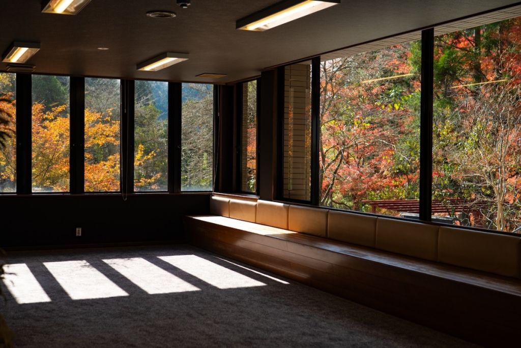 노천탕에서는 구라마 산자락을 한눈에 바라볼 수 있으며, 봄에는 푸른 산과 나무, 여름의 짙은 녹음, 가을의 단풍, 겨울의 설경 등 계절마다 다른 풍경을 즐길 수 있습니다.