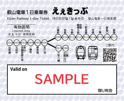 기부네구치역·구라마역 방면에는 이동하며 풍경 변화를 감상할 수 있는 전망열차 "키라라", 야세히에이잔구치역 방면에는 관광열차 "히에이"가 운행되며, 이 티켓으로 이용하실 수 있습니다.