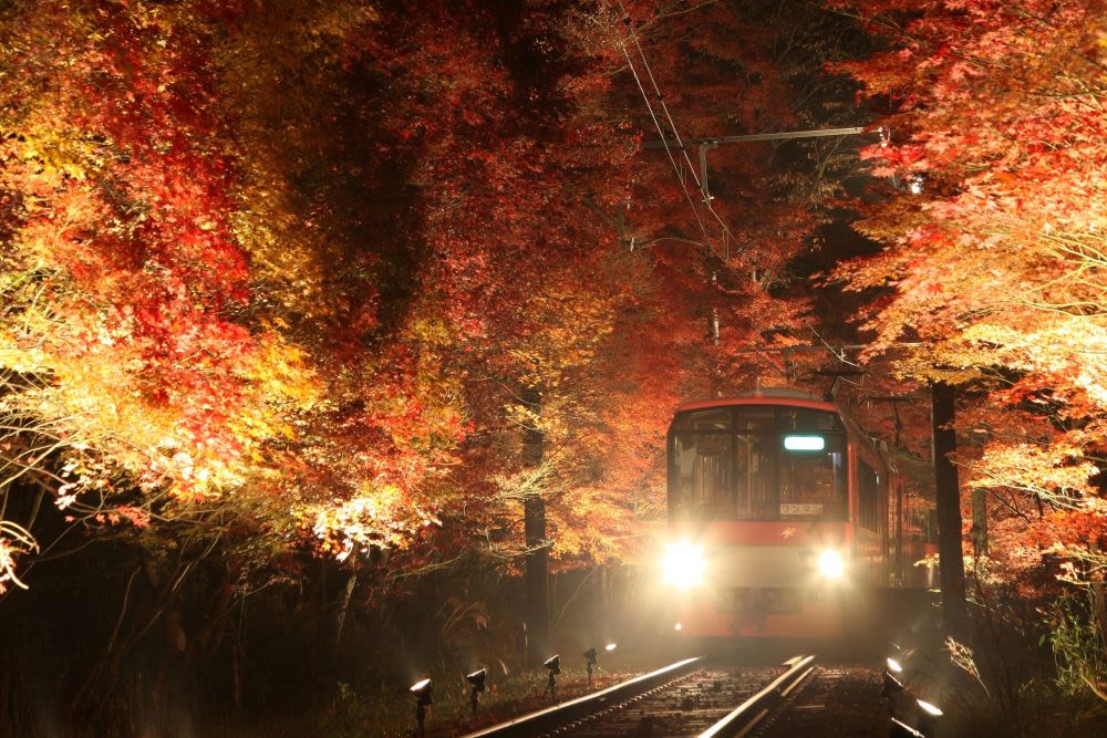 교토고쇼와 시모가모신사에 가까운 데마치야나기역을 기점으로 북쪽으로 이어지는 노선 주변에는 기부네신사, 구라마데라 등 역사 깊은 사찰·신사가 있으며, 봄에는 푸른 산과 나무, 여름에는 가와도코에서 맛볼 수 있는 요리, 가을의 단풍, 겨울의 설경 등 사계절 자연을 즐길 수 있습니다.