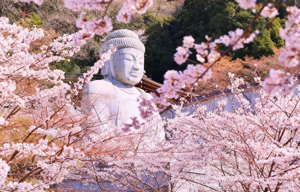 * 호사카사 벚꽃 대불 | 거대한 불상과 벚꽃의 조화