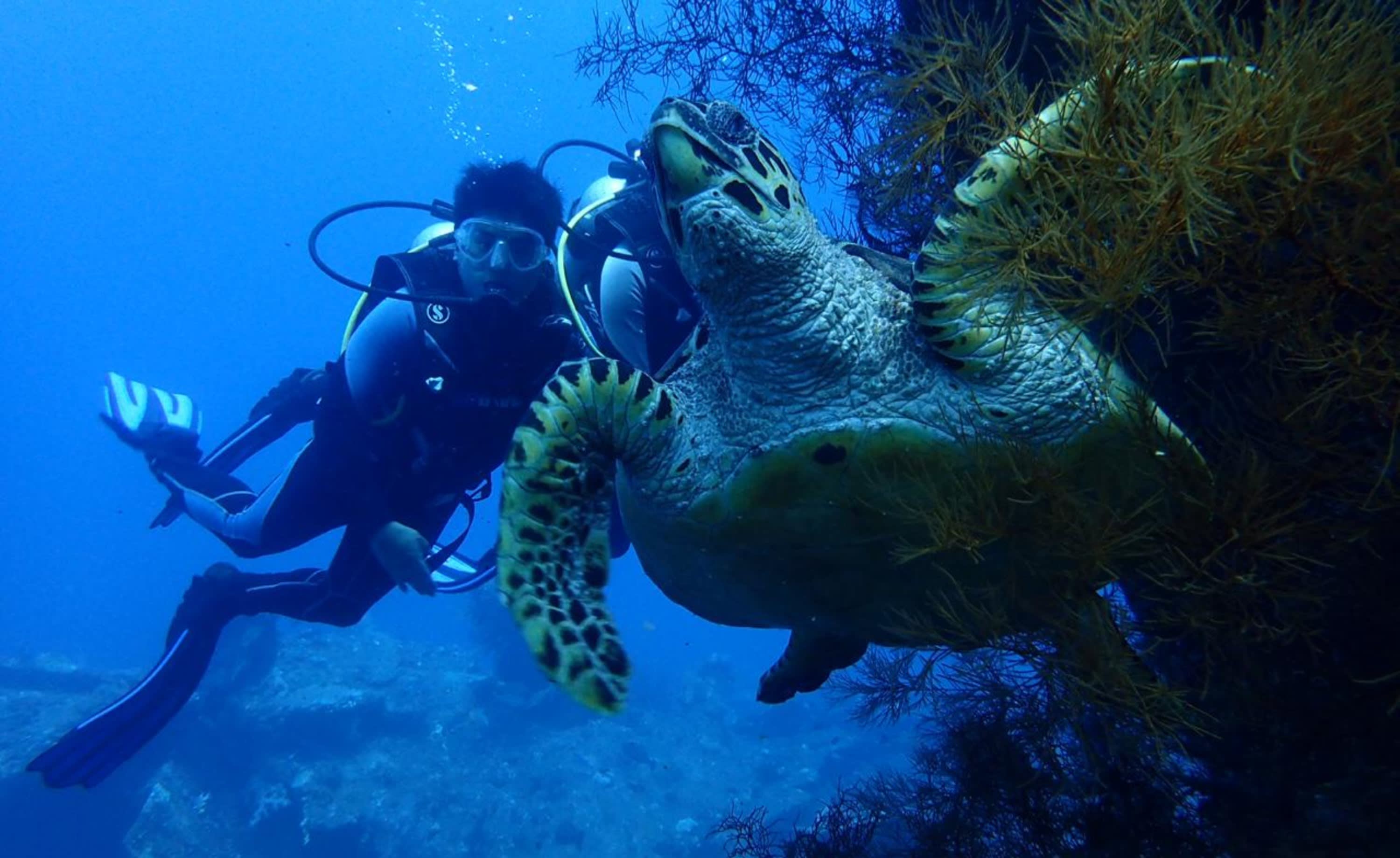 * 수심 5m부터 모습을 드러내는 다양한 해양생물을 구경하고, 산호로 뒤덮인 USS 리버티 난파선을 탐험합니다.