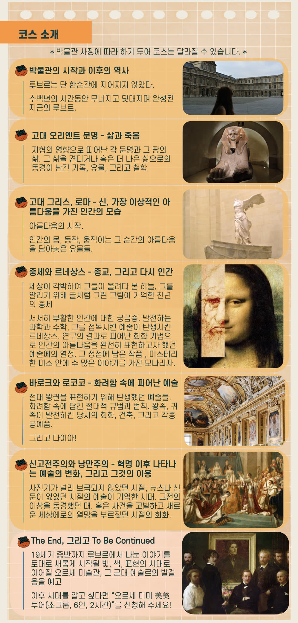 여행자들로 하여금 수천년 역사의 루브르를 스스로 '감'監(보고)하고 '감'感(느끼게)하는 문화 예술 역사를 흠뻑 머금은 투어!