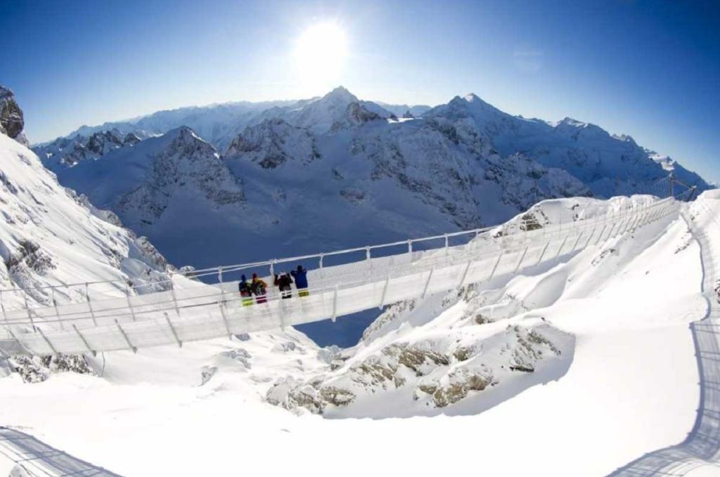 티틀리스 엑스프레스 케이블카에 탑승하여 티틀리스 산으로 올라가면서 엥겔베르그의 고산 지대를 감상하고, 중간 역에 도착하여 빙하 사이의 깊은 크레바스, 거대한 얼음 바위 등을 보면서 회전식 로테어 케이블카를 탑승하여 계속 이동하게 됩니다. 빙하 동굴의 터널, 유럽에서 가장 높은 현수교인 클리프 워크에서 추억을 남기고, 아이스 플라이어 스키 리프트를 타고 빙하 공원에서 스노우 튜브를 즐겨보세요.