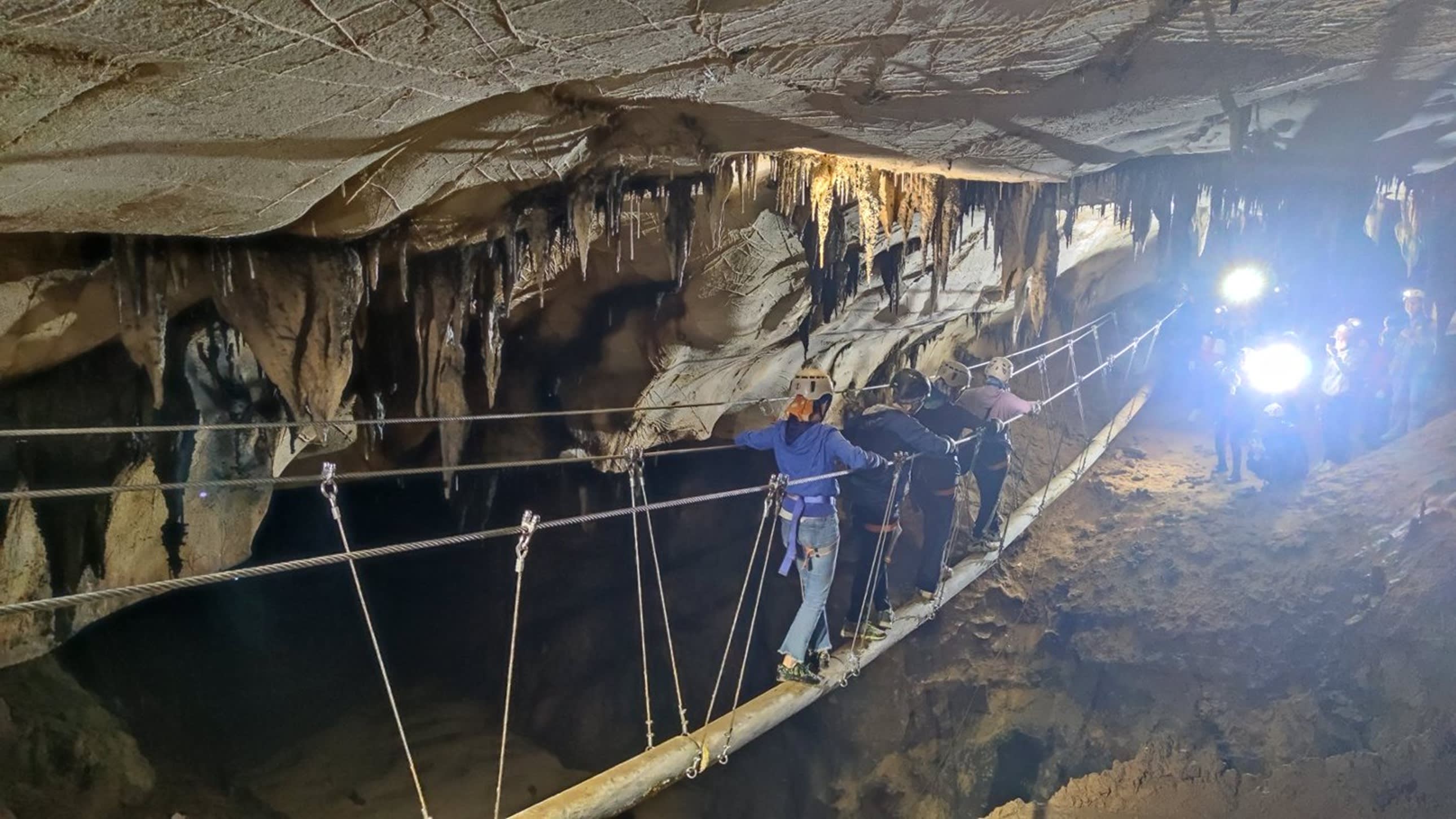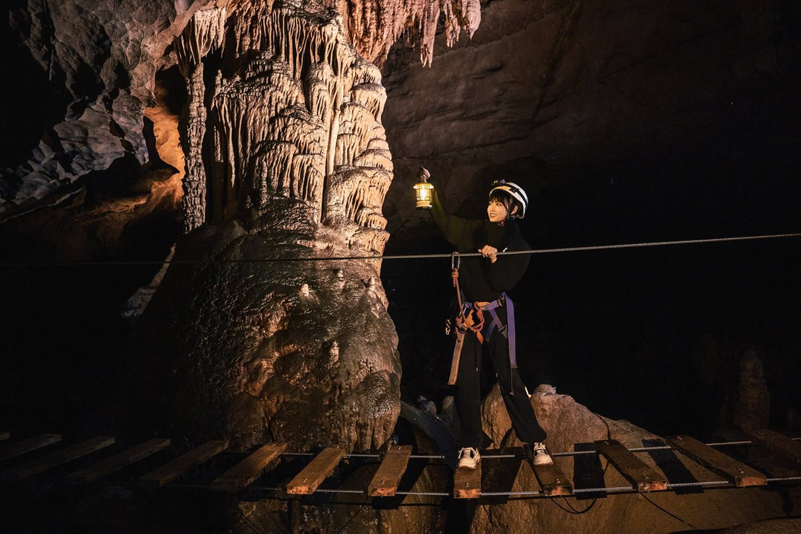 * 지심 탐험은 억만 년의 시간을 거슬러 올라가는 경험을 선사합니다. 대형 코스는 짚라인 동굴 진입, 30m 로프 하강, 암흑 하천 건너기 등 고강도 액티비티를 포함하며, 푸른 암흑 하천을 지나며 종유석이 빛과 그림자 속에서 흐르는 모습을 보면 마치 환상적인 비밀의 세계에 들어온 듯한 느낌을 줍니다. 소형 코스는 동굴 번지 점프 등 재미있는 코너를 압축하여 초보자도 쉽게 즐길 수 있습니다. 전 구간 전문 강사의 안내를 받으며 지리 지식에 대한 설명과 함께 안전을 보장받을 수 있습니다.