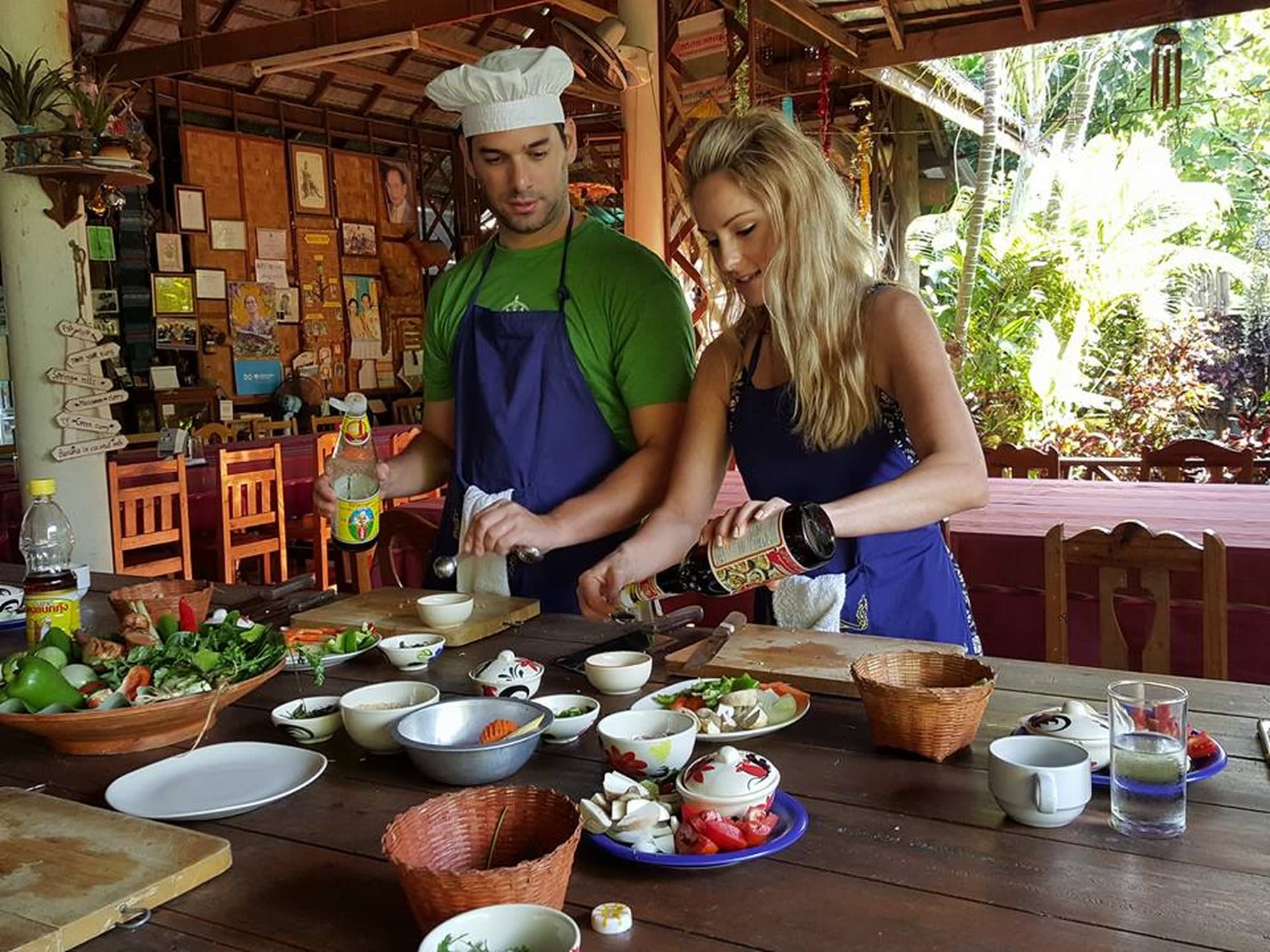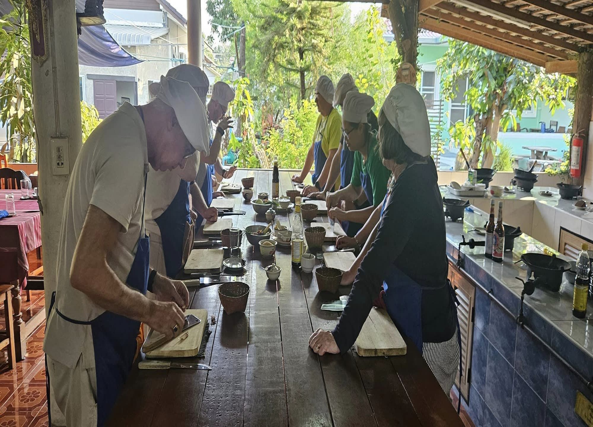 반 홍누알 쿠킹 스쿨은 치앙마이 시티에서 15분거리에 위치해 있으며, 영어에 능숙하신 강사님과 현지 시장을 방문해 음식 재료를 배우고 구매하고, 오픈 키친에서 음식을 배워서 만든 후 만든 음식을 드실 수 있어요.