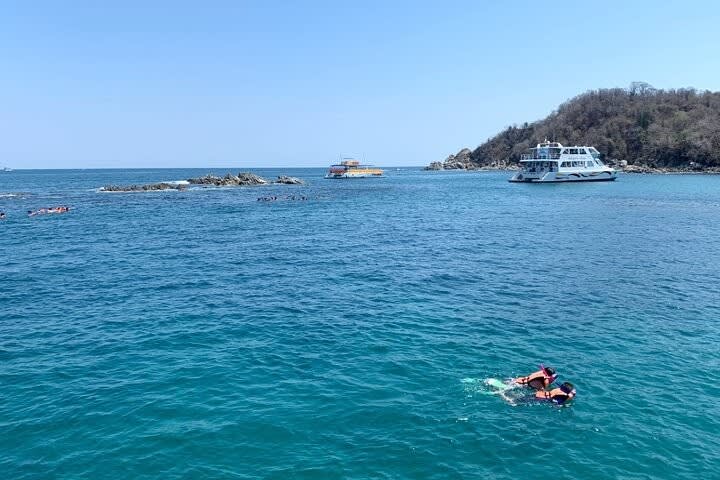 첫 번째 목적지는 평온한 차차쿠알 만입니다. 이곳에서 활기 넘치는 산호초에서 스노클링을 즐기거나 수영을 할 수 있습니다. 다음으로 마게이 만을 방문하여 상쾌한 수영을 즐기고 맛있는 해산물 요리를 맛보세요 (개인경비). 여행 중 부파데로의 숨겨진 해안 동굴과 고대 얼굴을 닮은 돌 형상인 믹스텍 얼굴과 같은 자연의 경이로움을 감상하세요. 돌고래, 만타 가오리, 거북이, 바닷새를 찾아보는 것도 잊지 마세요.