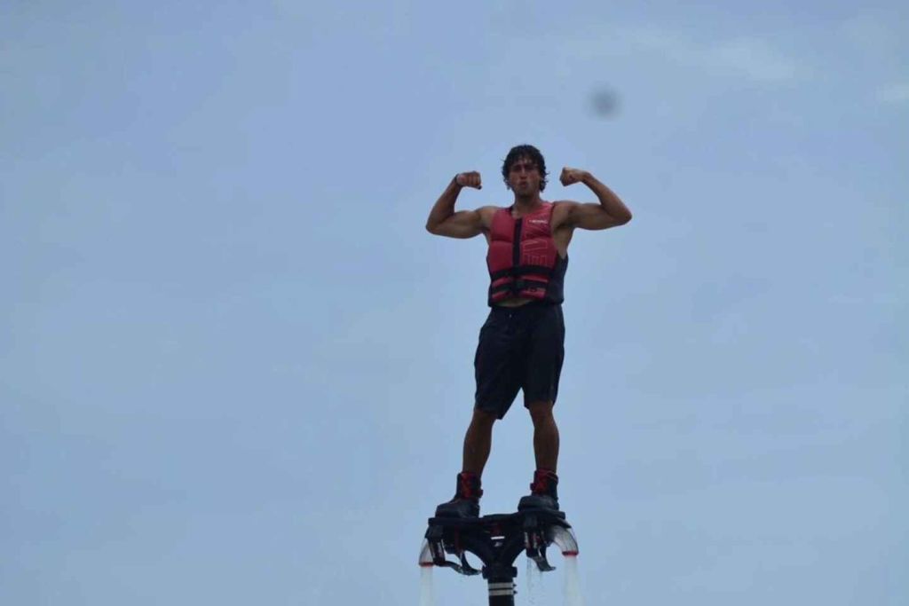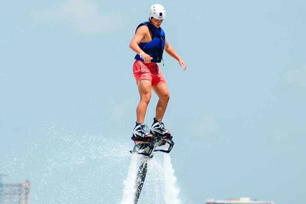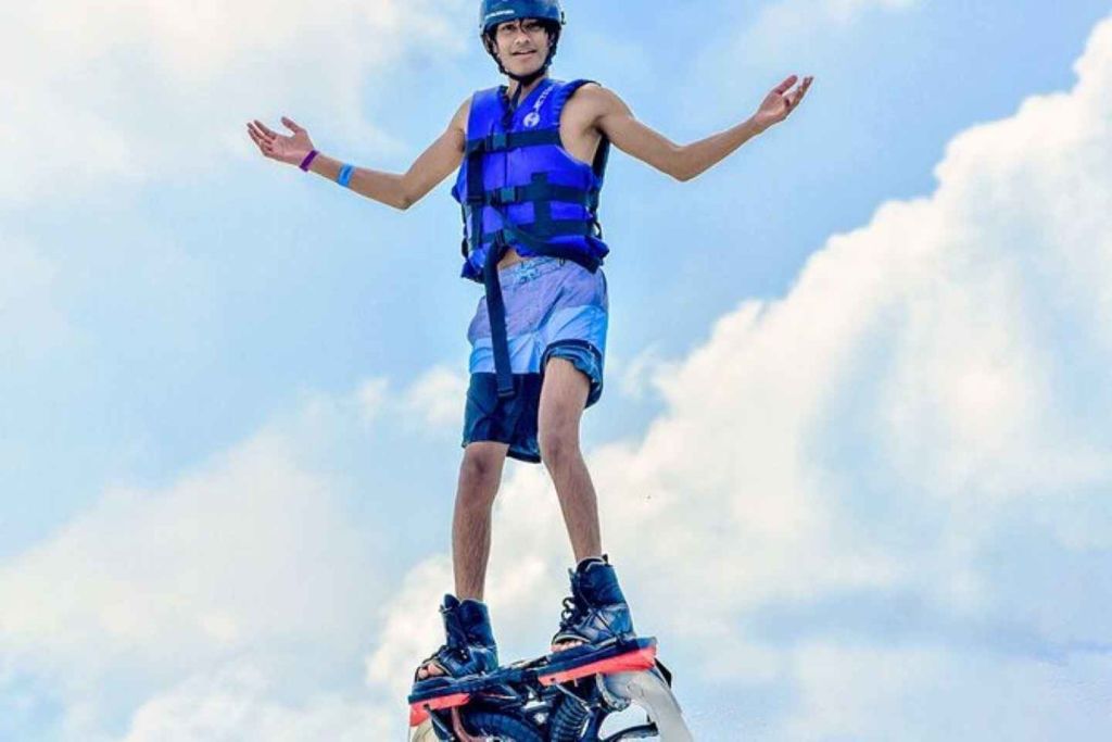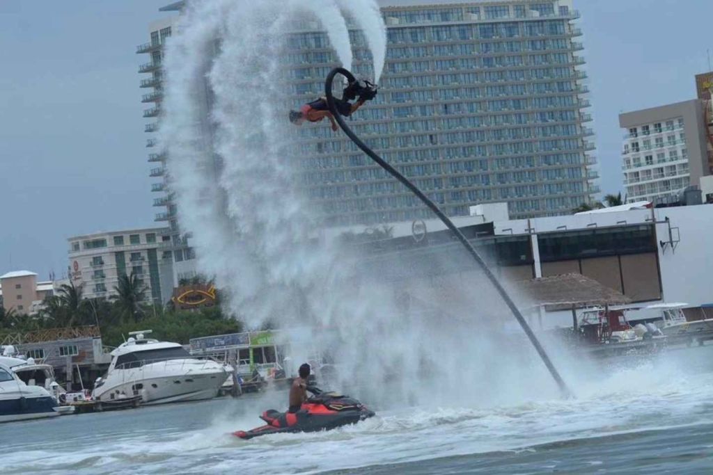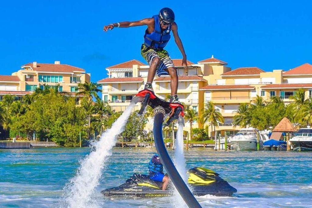 아름다운 니춥테 라군에서 잊을 수 없는 플라이보딩 체험을 하며 아드레날린이 솟구치는 여행을 준비하세요. 공인 조종사의 안내에 따라 플라이보드 작동에 대한 포괄적인 교육을 받고 안전하고 스릴 넘치는 비행을 즐겨보세요.