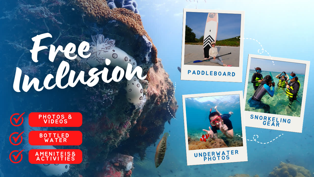 여행 중에는 마스크와 스노클을 포함한 필요한 모든 스노클링 장비를 이용할 수 있습니다. 또한 보트의 선 데크에서 휴식을 취하고 아름다운 경치를 감상하며 무료 다과를 즐길 수 있습니다.