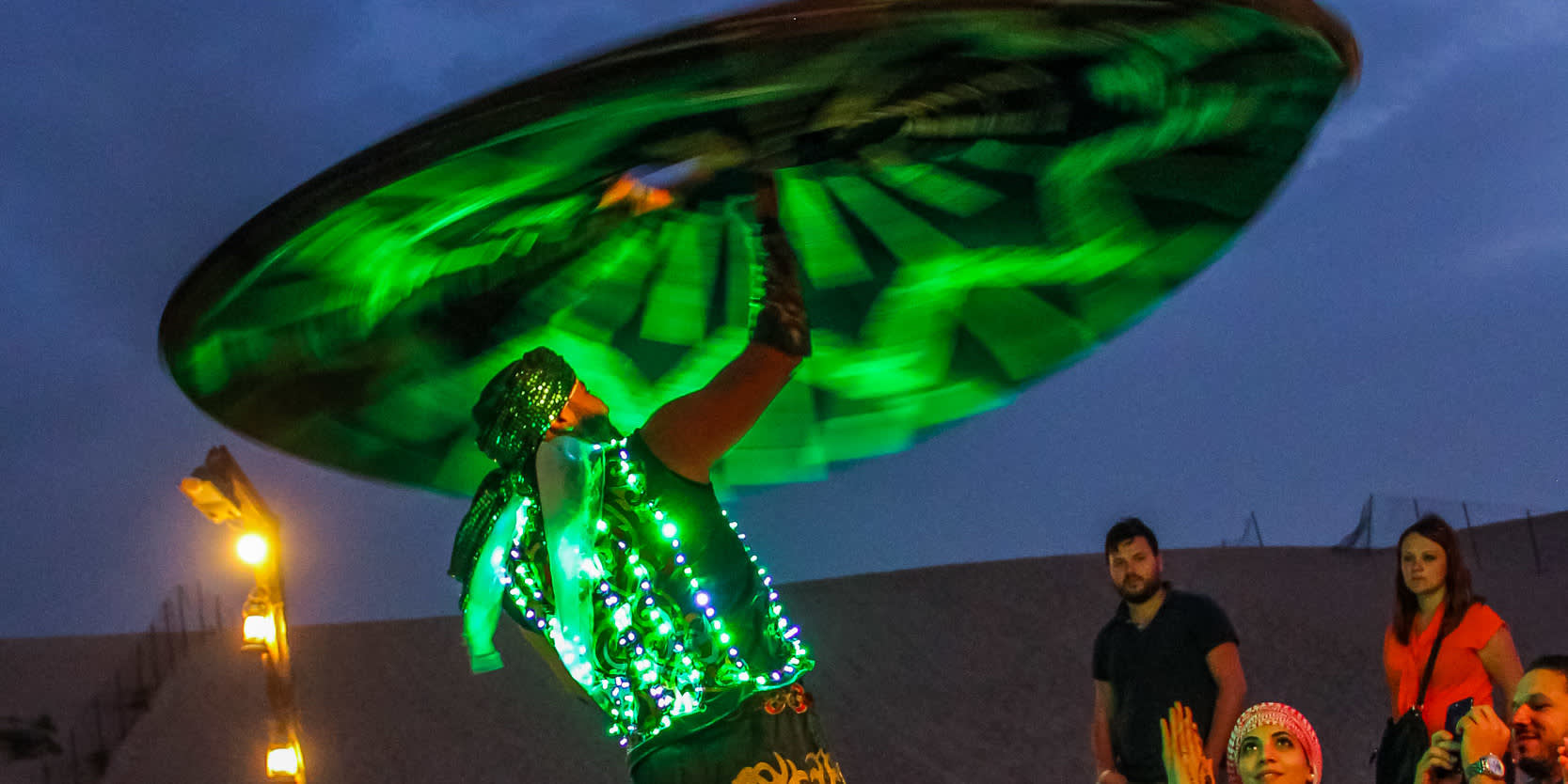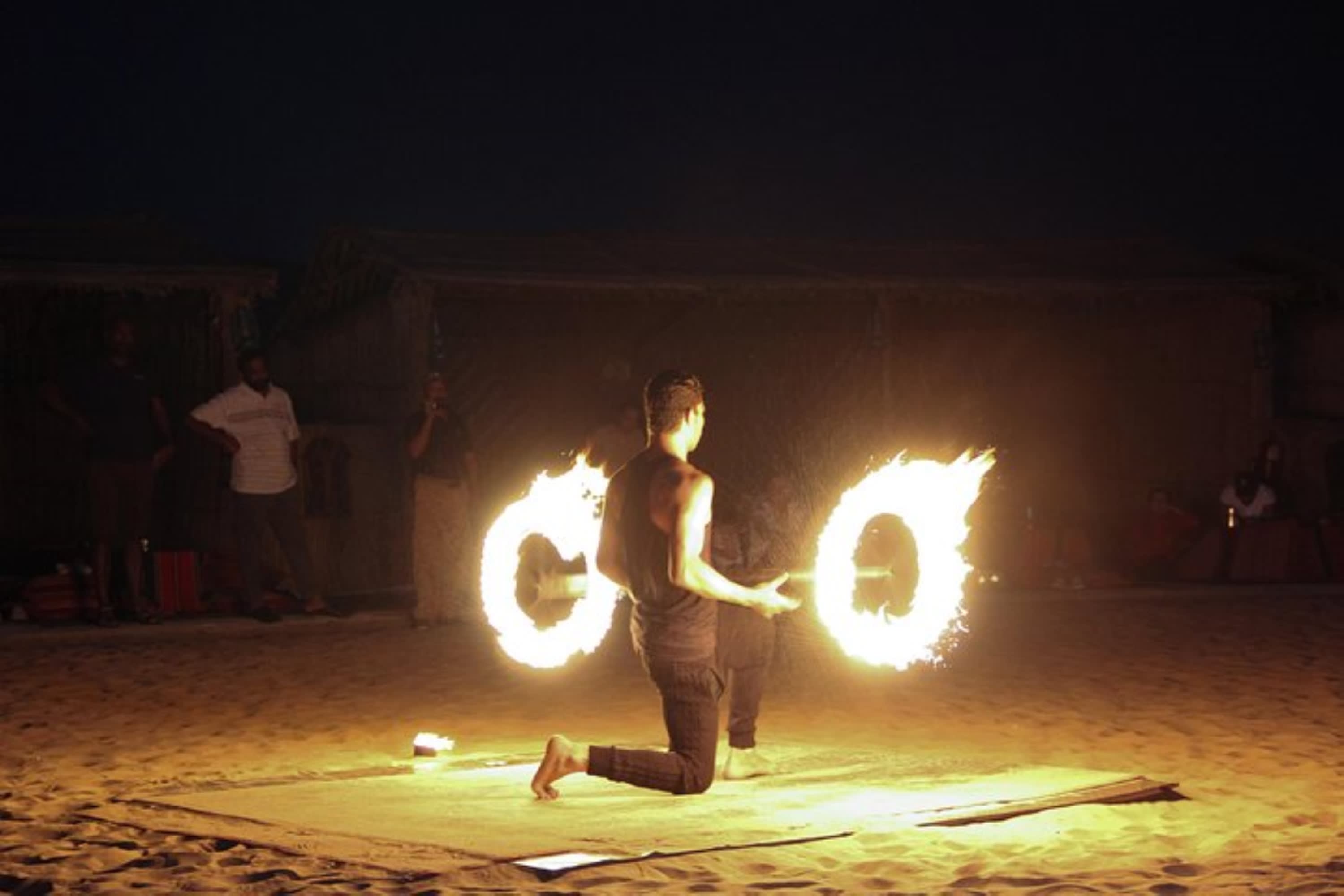 • 17시간 동안 진행되는 이 야간 투어는 두바이에서 오후에 출발하여 아라비아 사막을 가로지르는 신나는 드라이브로 시작됩니다. 사진 촬영을 위한 스릴 넘치는 듄 드라이빙을 즐기고, 브리핑을 위해 낙타 농장을 방문하여 전통적인 아라비아 캠프장에 도착하여 일몰을 감상하세요. 아라비아 커피와 대추야자로 여러분을 환영할 것입니다. 낙타를 타고, 샌드보딩을 즐기고, 매와 교감해보세요. 헤나 문신을 하고, 시샤와 함께 휴식을 취하고, 샤와르마 또는 팔라펠과 같은 인기 있는 현지 간식을 맛보세요. 저녁에는 타누라 댄스와 불 쇼를 포함한 라이브 엔터테인먼트가 펼쳐지며, 맛있는 바비큐 저녁 식사와 별빛 아래 매혹적인 벨리 댄스가 이어집니다. 상쾌한 아침 해돋이와 아라비아식 아침 식사를 즐기기 위해 이글루 텐트로 돌아가 편안한 밤을 보내고 돌아옵니다.