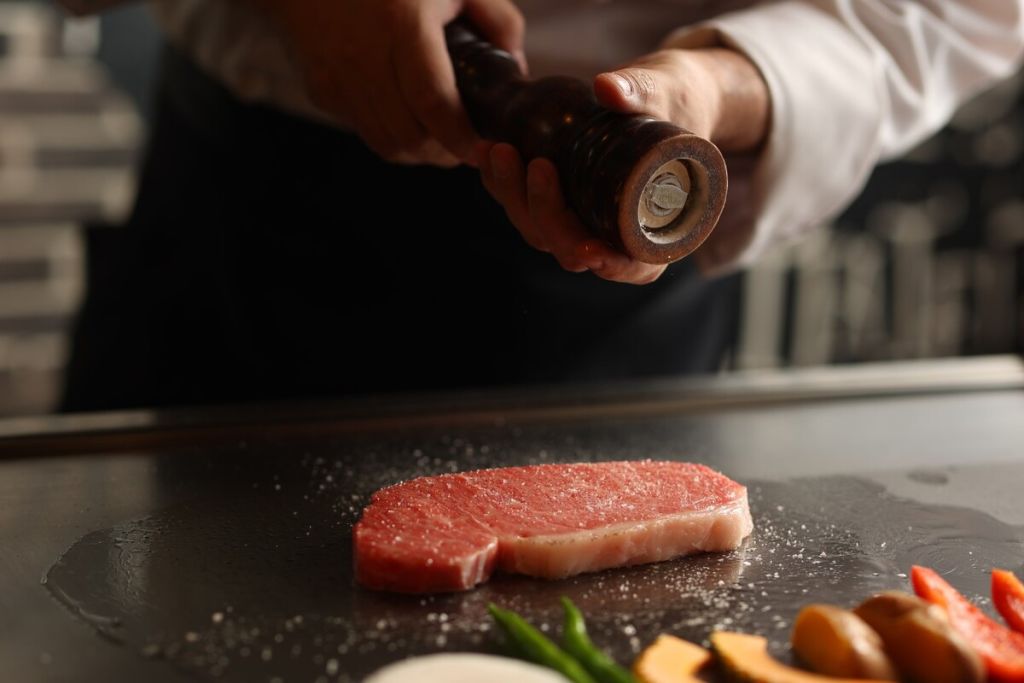 최고급 고베규를 눈앞에서 구워 LIVE 느낌도 즐길 수 있는 철판구이 스타일!