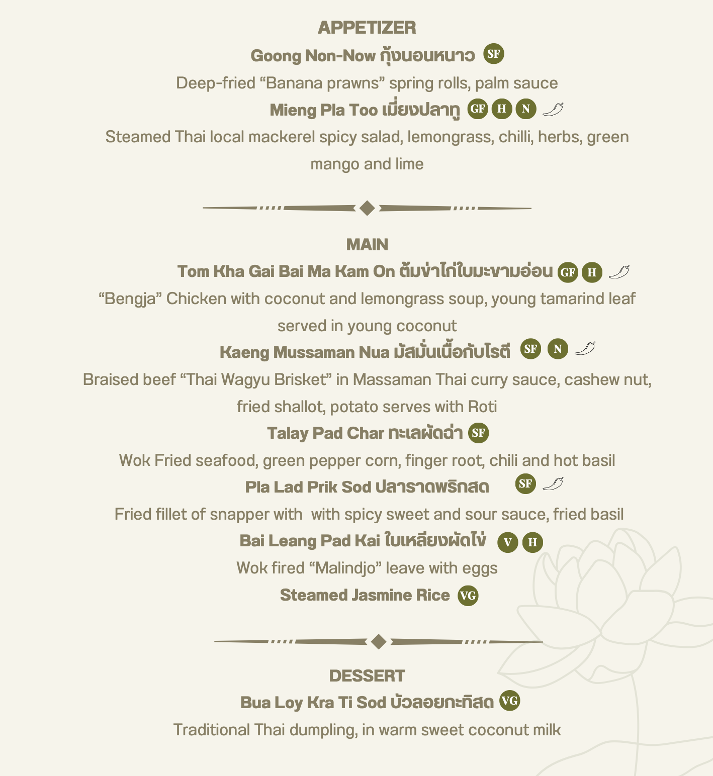 "정통 타이 퀴진의 진수를 경험하세요!"