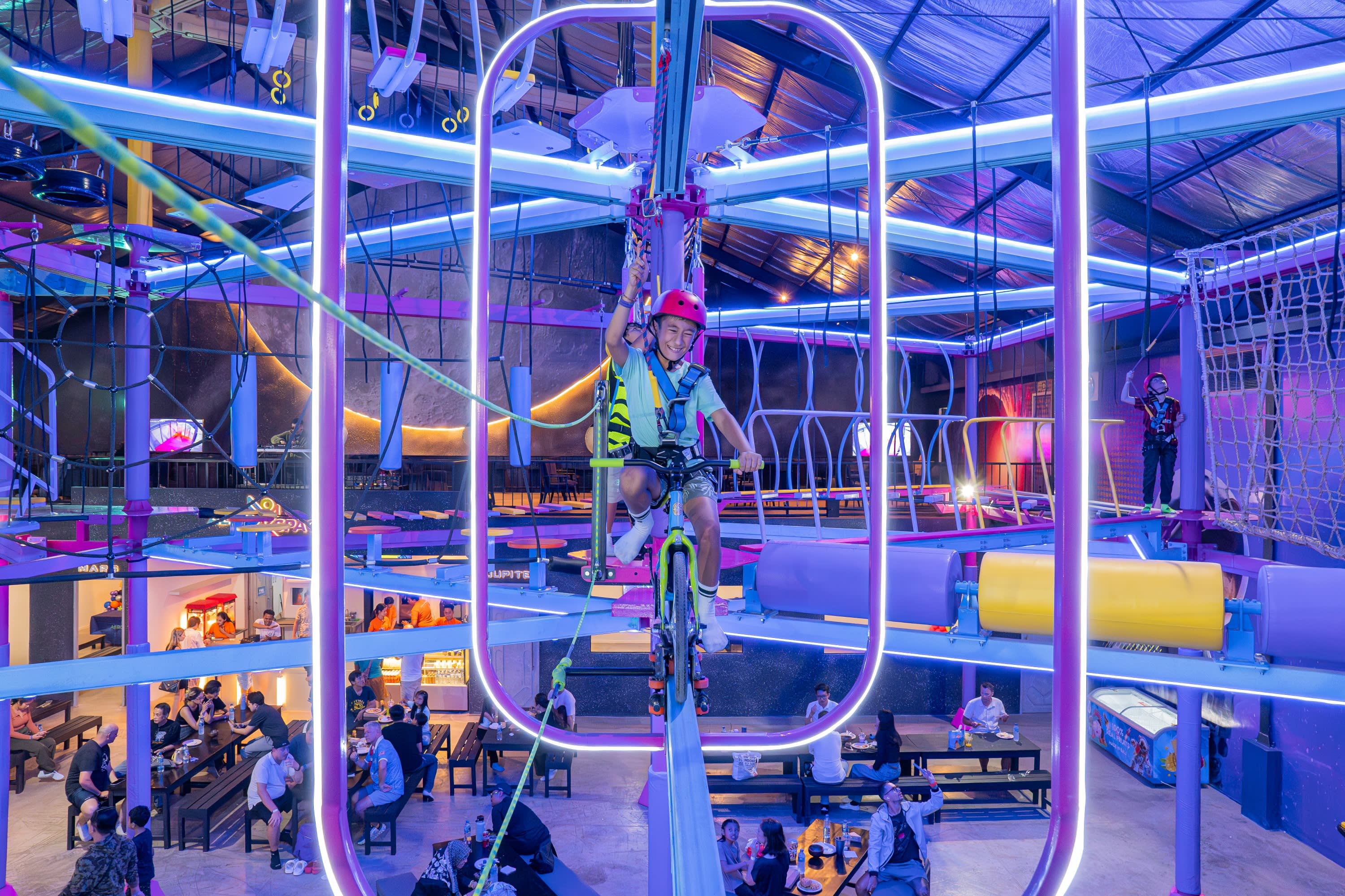* AeroXSpace Adventure는 혁신적인 체험형 어트랙션, 트램펄린 존, 모든 연령대가 즐길 수 있는 스릴 넘치는 액티비티를 통해 어린이, 청소년, 가족 모두가 미지의 세계로 빠져들 수 있도록 설계되었습니다.