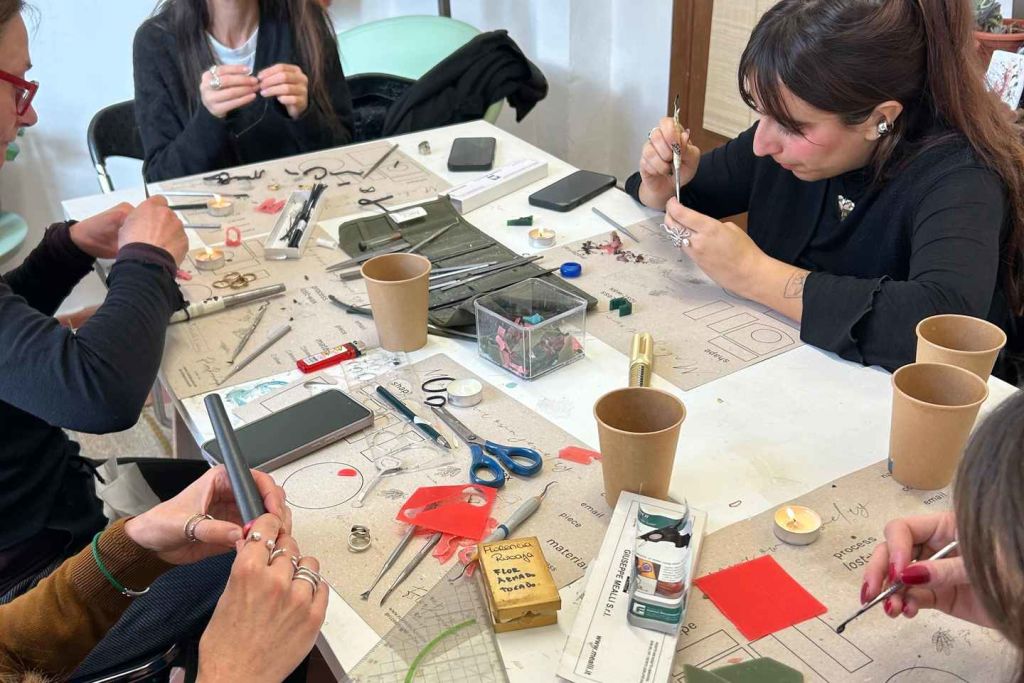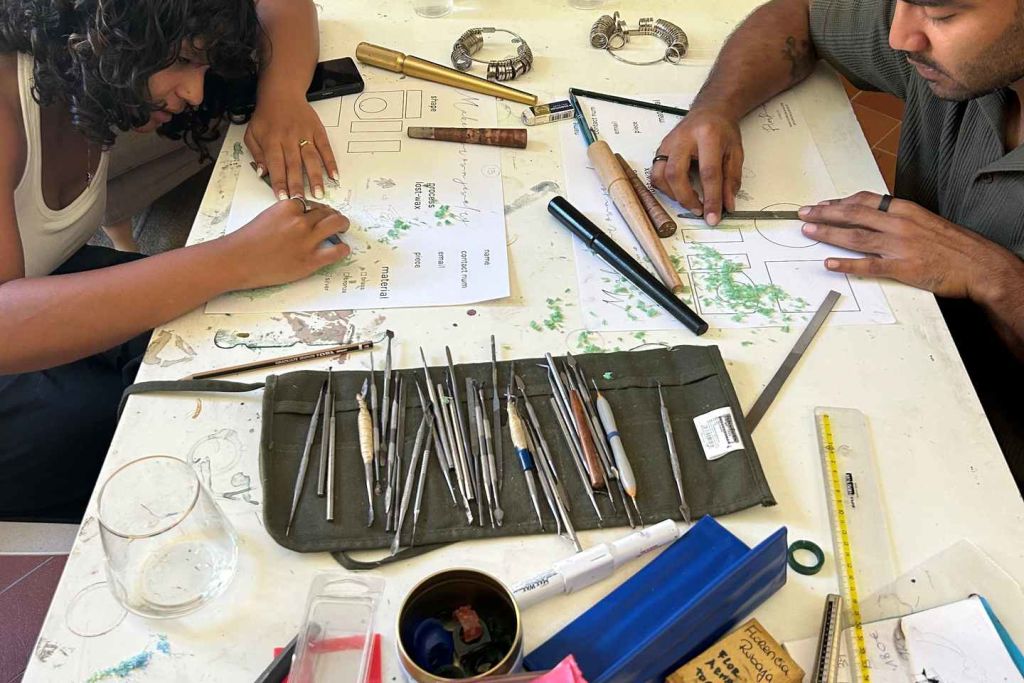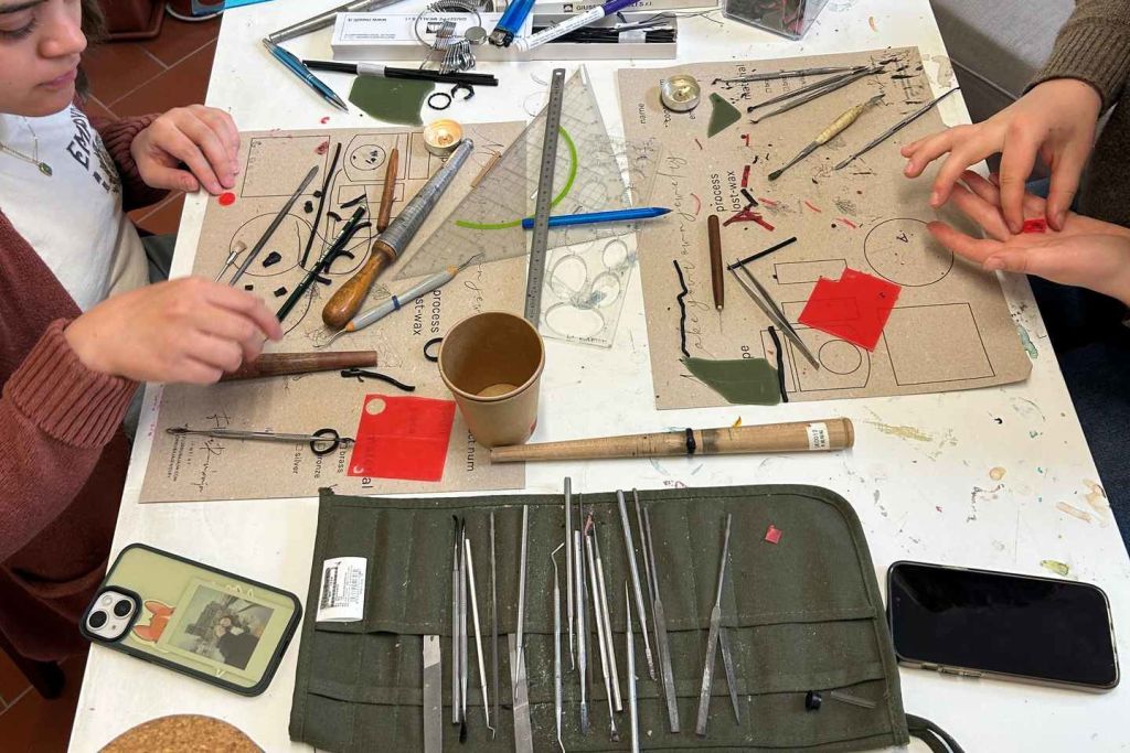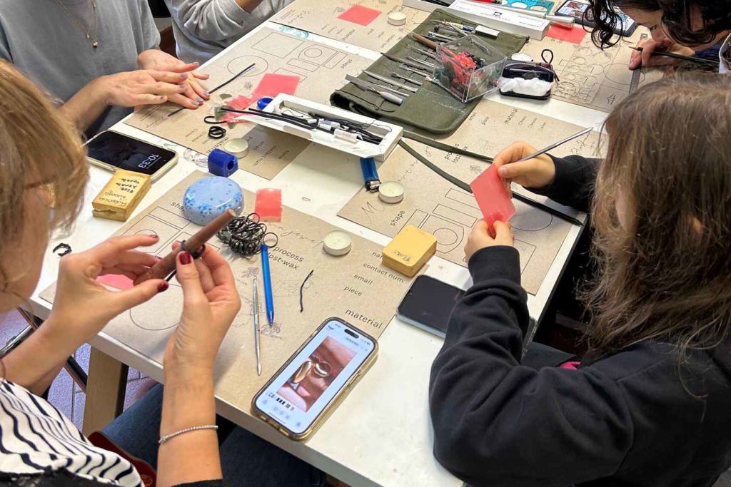 왁스로 반지, 귀걸이, 펜던트 또는 원하는 어떤 작품도 만들 수 있습니다. 워크숍 종료 시 1점(또는 최대 7그램의 금속 무게에 해당하는 작품)을 선택해 순은으로 주조할 수 있습니다.