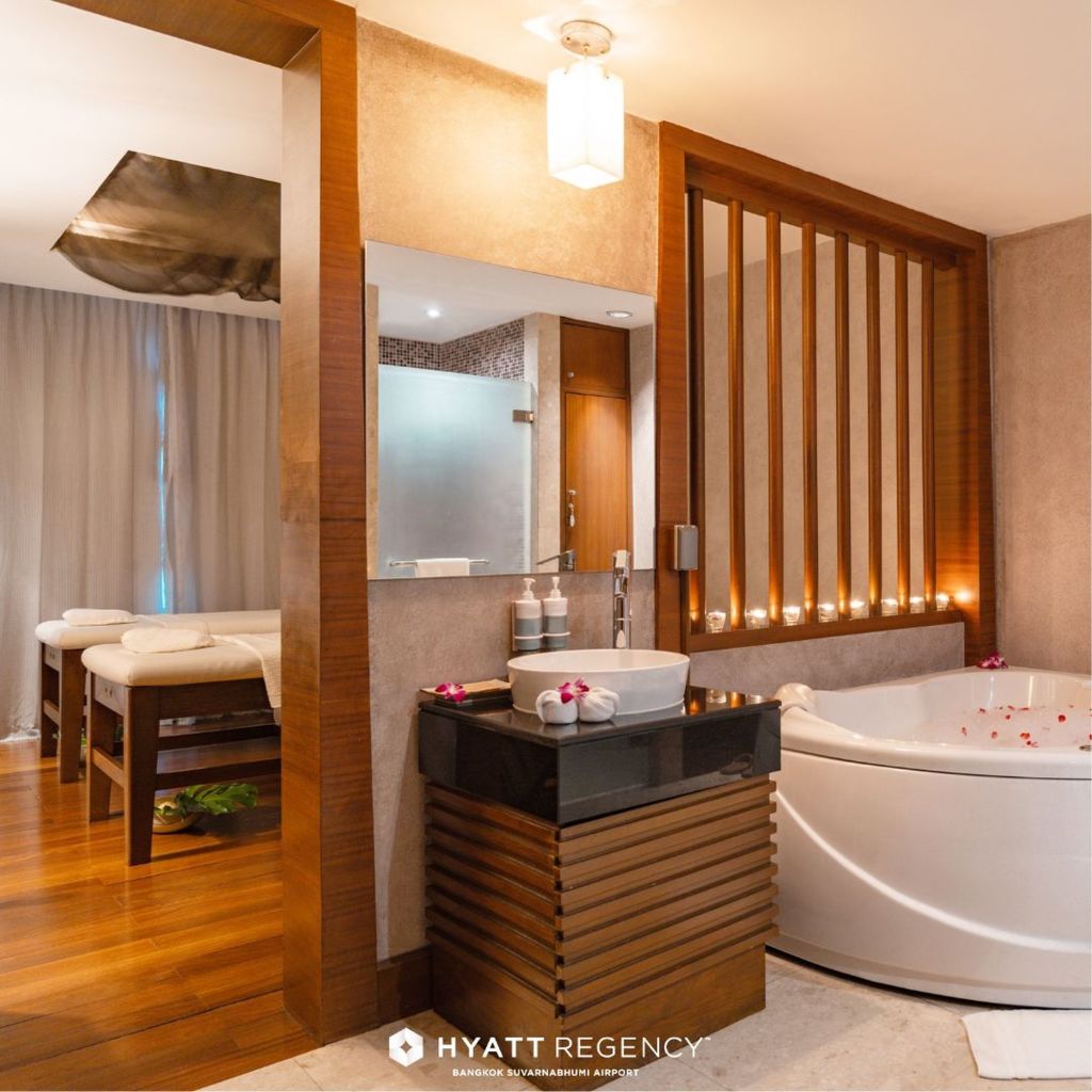 구글맵에서 'THE SPA at Hyatt Regency Bangkok Suvarnabhumi Airport'를 검색 후 기사님에게 보여주세요.