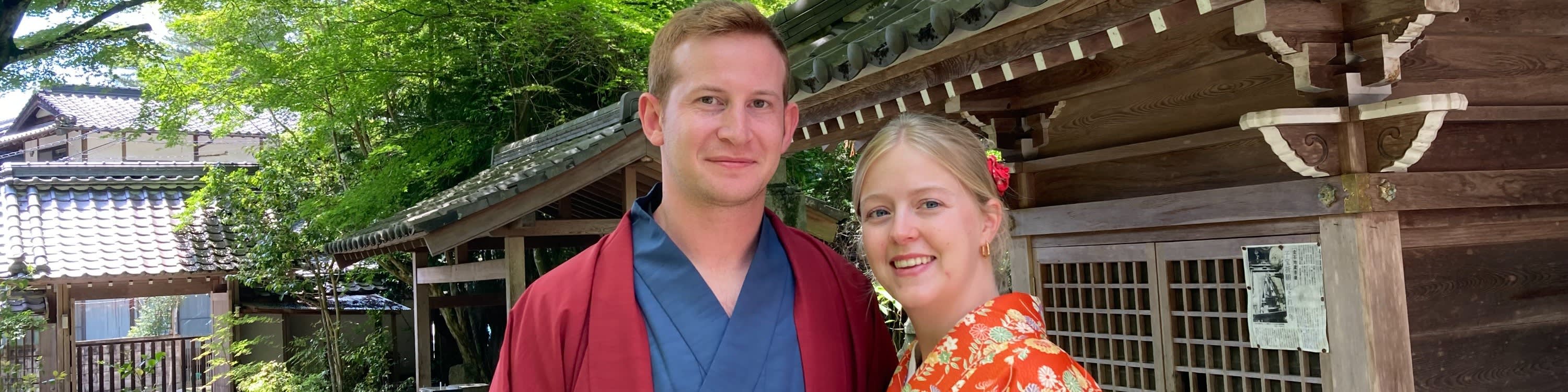 절에서 편안하게 휴식을 취하며 전문적인 스타일링으로 고급 실크 기모노를 입어보세요! 예약된 시간에 리셉션에 체크인하세요. 기모노를 입는 데 20~30분 정도 소요됩니다. 준비된 기모노와 오비 벨트 중에서 마음에 드는 것을 골라보세요. 기모노에 어울리는 가방을 선택하세요. 관광에 필요한 물건만 챙기세요. 돌아오실 때까지 짐은 저희가 보관해 드립니다. 저희 정원에서 사진을 찍어 드립니다. 준비가 끝나면 자유롭게 산책을 즐기세요. 16:00까지 돌아오시면 됩니다.