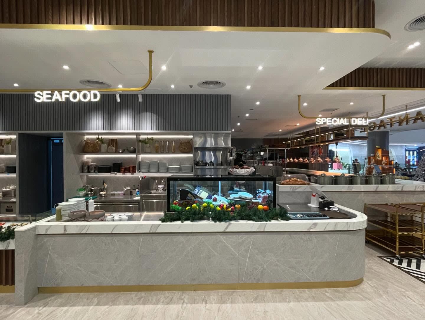 도시 중심부에 있는 새로운 쇼핑몰, 원 방콕에서 맛있는 뷔페를 즐겨보세요.