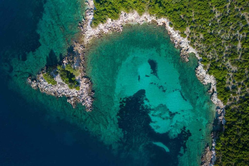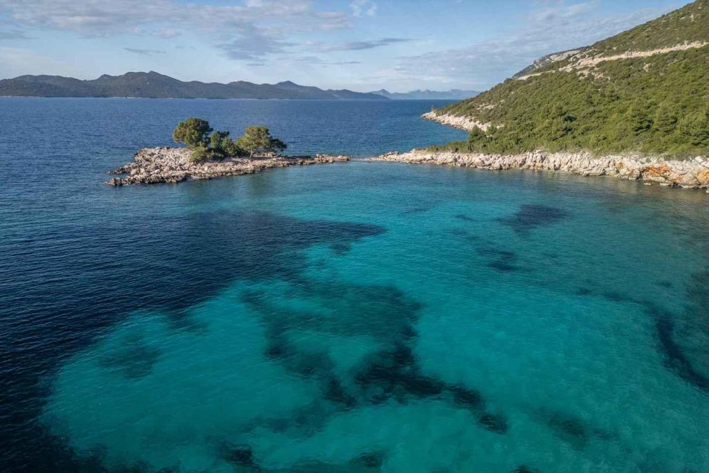 Sjekirica의 블루 라군에서 투명하고 맑은 물에서 수영하며 휴식을 취하세요.
