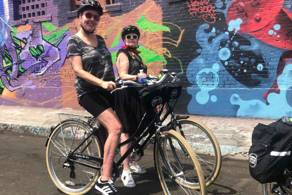 약 9.6km를 자전거로 달리며 예술 지구의 역사, 미래의 발전, 그리고 다채롭고 다차원적인 거리 예술을 통해 골목 벽을 장식하는 '크루'에 대해 알아보세요.