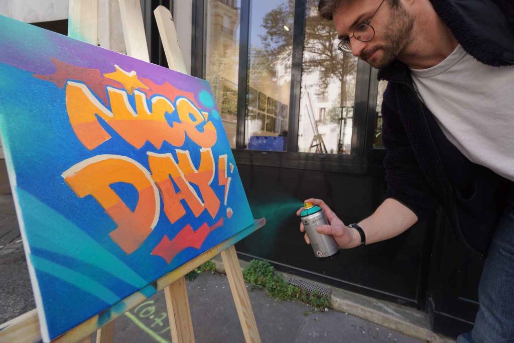 캔버스에 스프레이 페인트로 디자인을 그리며 진짜 그래피티 아티스트가 된 기분