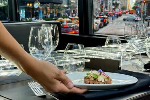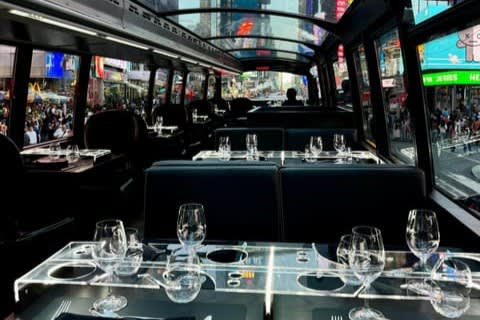 뉴욕에서 특별한 경험을 선사하는 2층 버스 레스토랑, 버스트로놈 NYC에 탑승하세요! 통유리 지붕 아래 뉴욕의 랜드마크를 감상하며 애슐리 김(Ashley KIM) 셰프가 선사하는 4코스 런치 또는 6코스 디너를 맛보세요.