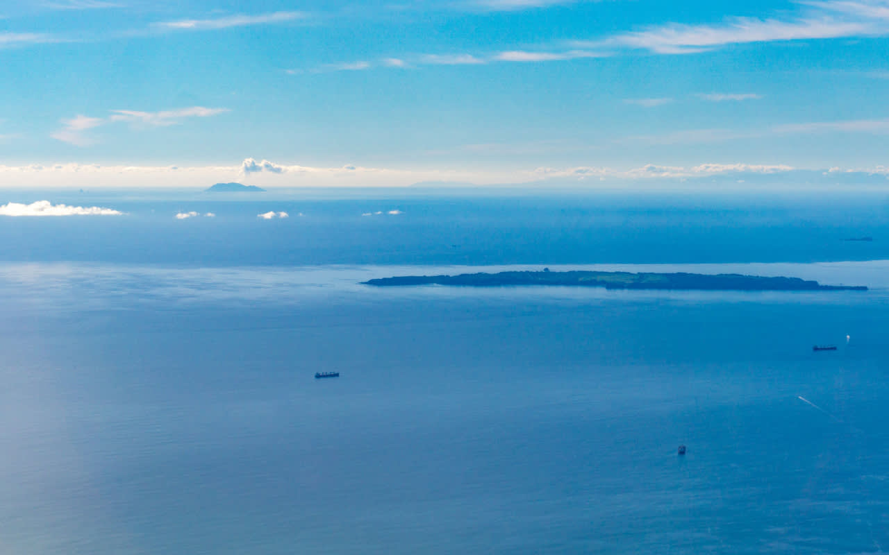 * 멀리 떨어진 코로만델 반도, 루아페후 산, 화이트 섬을 선명하게 볼 수 있습니다.