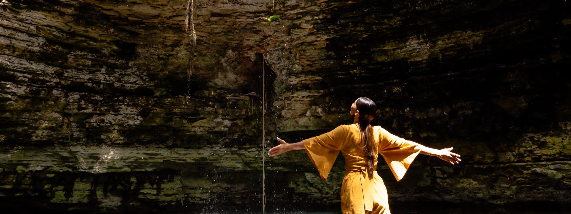 평온한 세노테 수영: 등반 후에는 평화로운 천연 담수 풀에서 상쾌하게 수영을 즐겨보세요.