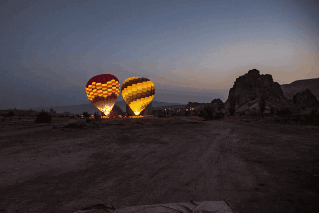 카파도키아 상공에서 열기구를 타고 하늘에서 펼쳐지는 장관을 감상하세요. 괴레메의 숙소에서 날이 밝기 전에 픽업되어 그날의 기상 조건에 따라 조종사가 선택한 이륙 장소로 이동하며 휴식을 취하세요.