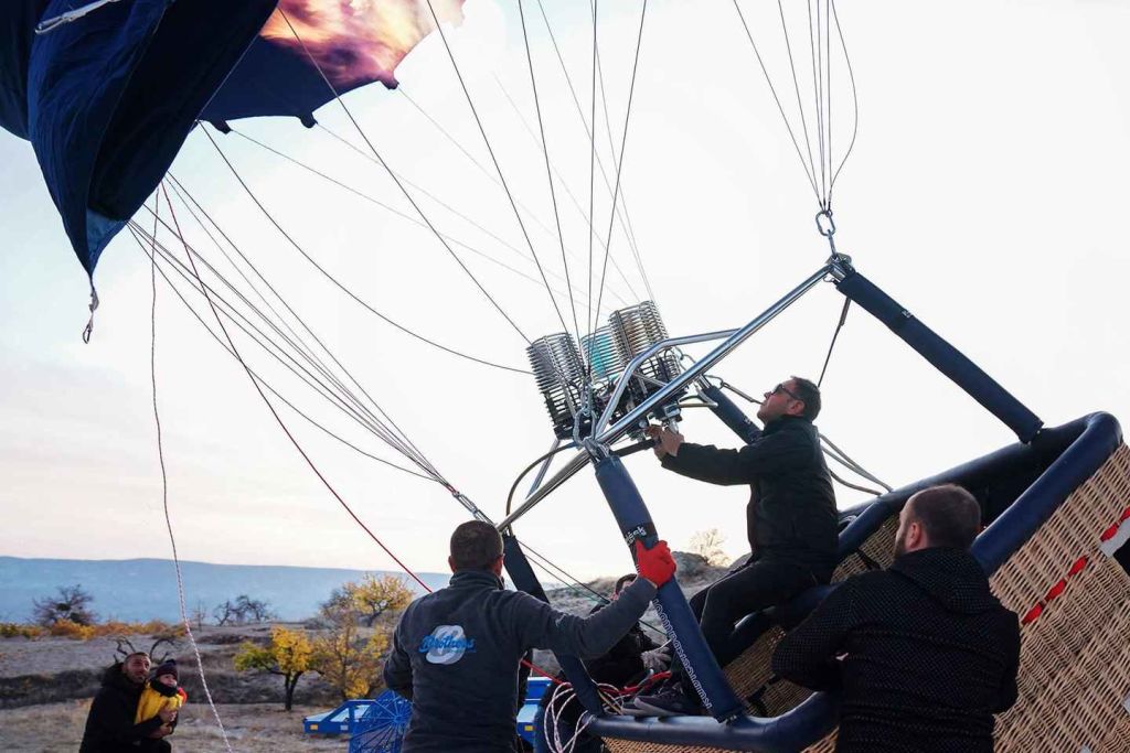 도착하면 승무원이 비행 준비를 하는 동안 가벼운 페이스트리와 함께 차와 커피를 즐기세요. 바구니에 올라타서 조종사가 자세한 안전 지침을 설명하는 것을 들어보세요. 그런 다음 버너가 점화되면 천천히 하늘로 올라갑니다.