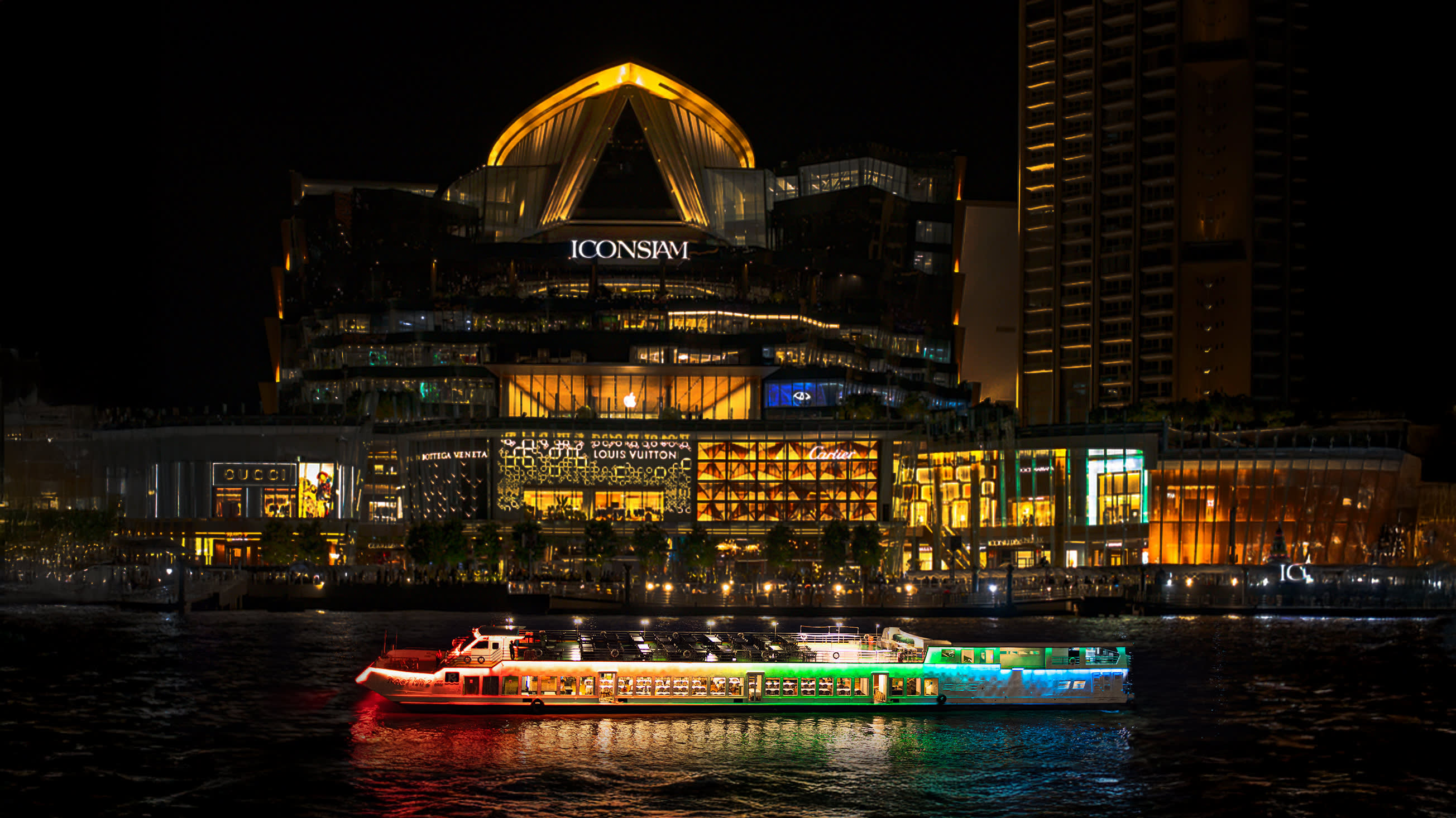 차오프라야강의 아름다운 야경을 만끽하세요. 형형색색의 보트들이 강물에 비쳐 반짝이는 모습은 마치 마법에 걸린 듯 황홀합니다. 짜릿한 쇼와 함께 물 위에서 펼쳐지는 흥미진진한 볼거리에 흠뻑 빠져들어 잊지 못할 추억을 만들어보세요. 지금껏 경험하지 못했던 놀라움과 감동을 선사합니다!