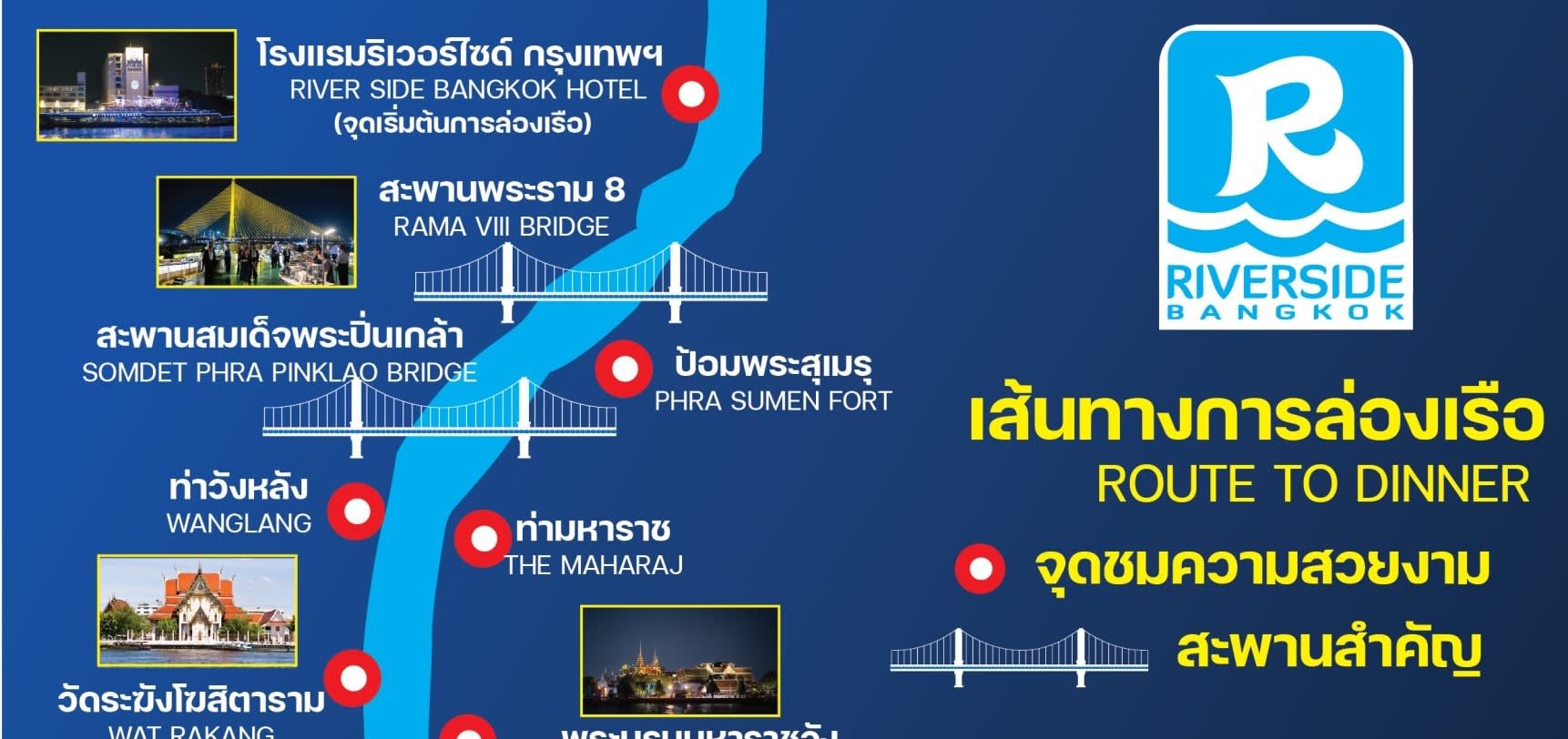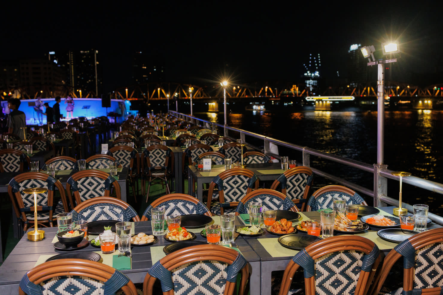 ▶리버사이드 부두 디너 크루즈 (운항 시간: 19:30-21:30) - 이용요건 * 만 0-10세는 반드시 티켓을 소지한 성인을 동반해야 합니다. * 만 11세 이상은 성인과 동일한 요금이 적용됩니다. * 만 0-3세는 무료입니다. - 추가정보 * 공연은 에어컨이 완비된 아래층 객실에서 진행됩니다. * 음악은 엄숙한 분위기를 반영하여 부드럽고 경건하게 연주됩니다. * 춤 또는 선정적인 쇼는 진행되지 않습니다. * 중요 공지: 특정 요일에는 수위가 높아 선장이 다리 통과를 위해 크루즈 경로를 약간 조정해야 할 수 있습니다. 하지만 항해 시간과 거리는 변동 없이 유지됩니다. 탑승 시 승무원이 필요한 경로 조정 사항을 안내해 드릴 것입니다.
