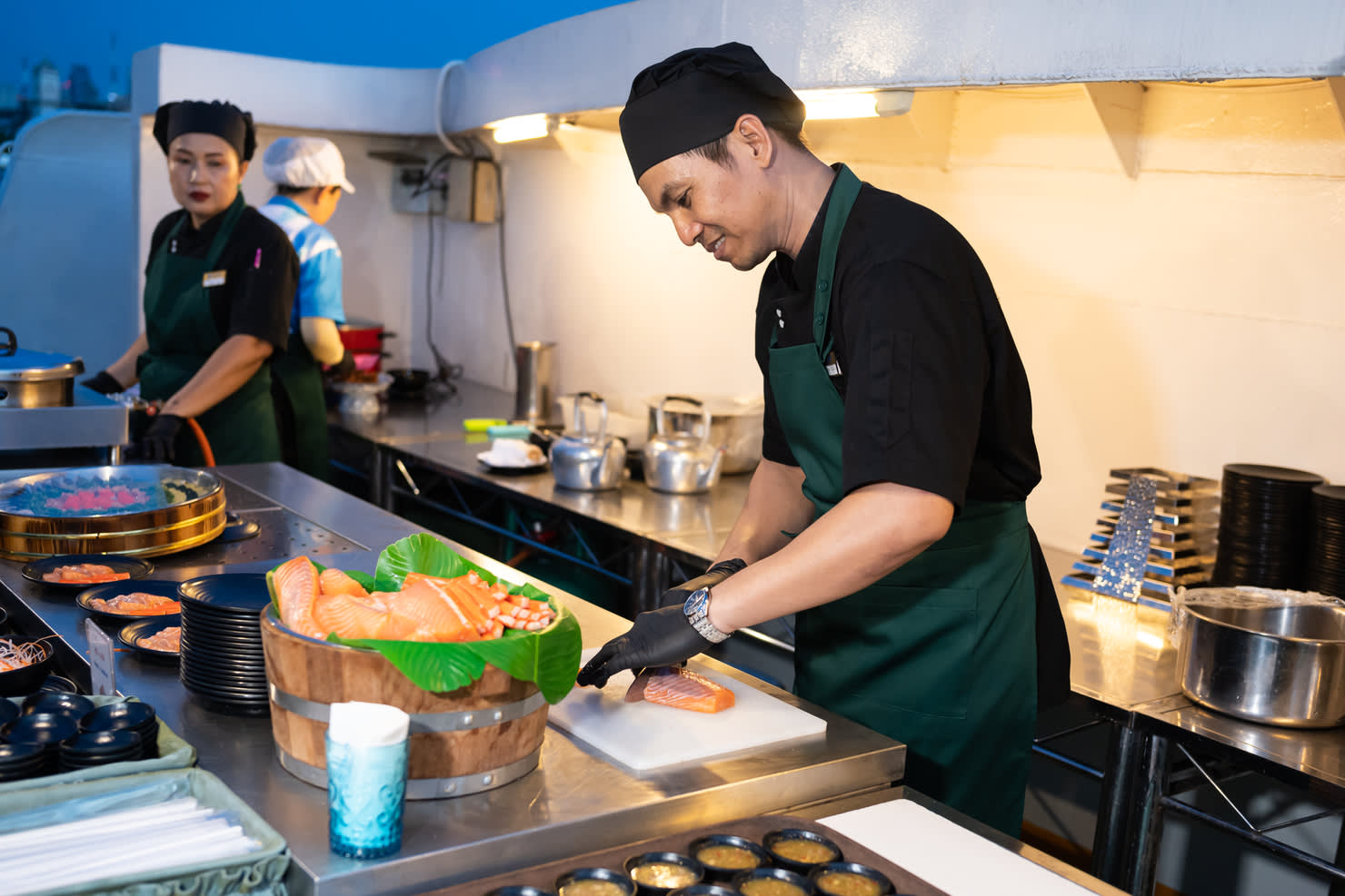 * 해산물, 연어 등 다양한 세계 각국의 요리가 어우러진 2시간 디너 뷔페를 즐겨보세요.
