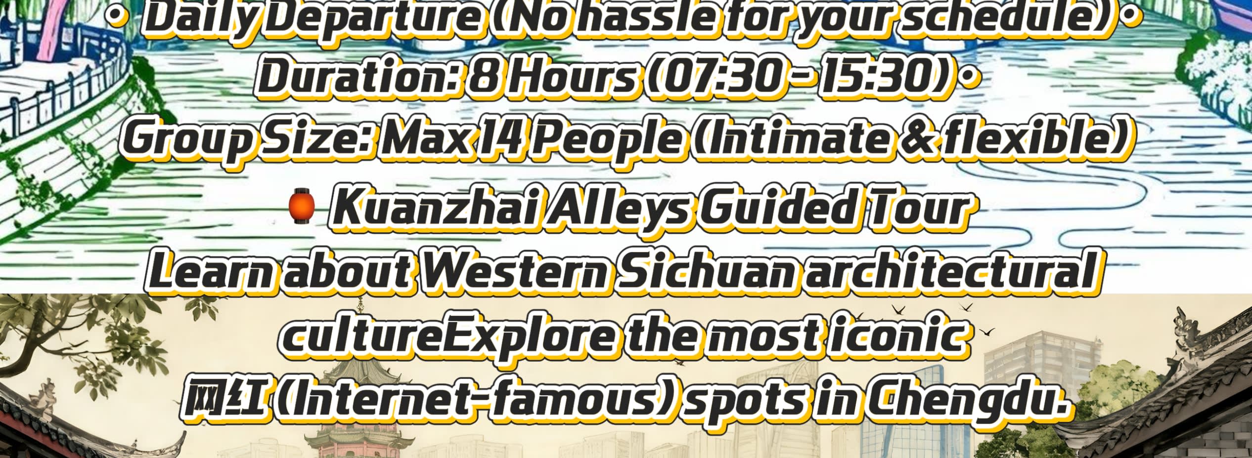 * 🏮 14:30-15:30: 콴자이샹즈를 거닐며, 쓰촨 서부 민가 특색을 탐험하고, 가이드의 건축물에 숨겨진 민속 이야기 상세 설명을 듣고, 옛 골목의 활기찬 분위기를 느껴보세요
