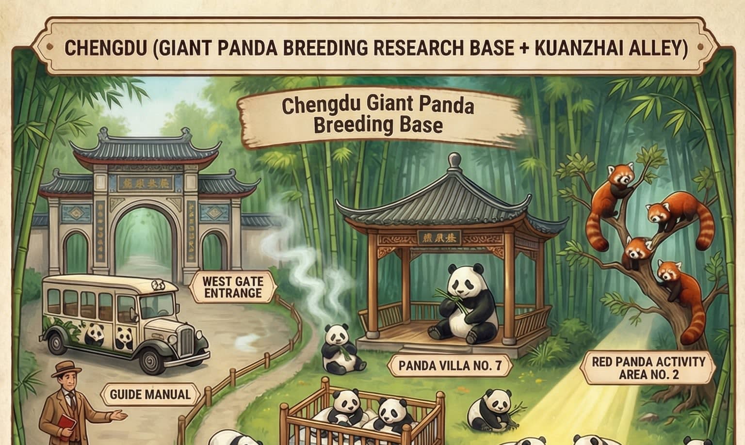 - * ✔️ 안심 보험: 판다 기지 입장권 + 여행자 보험 + 전체 영어 가이드 포함, 강제 소비 없이 순수 투어!