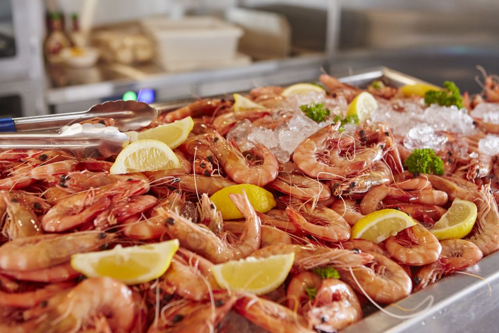 신선한 현지산 바다 왕새우로 만든 뷔페 점심을 즐겨 보세요.