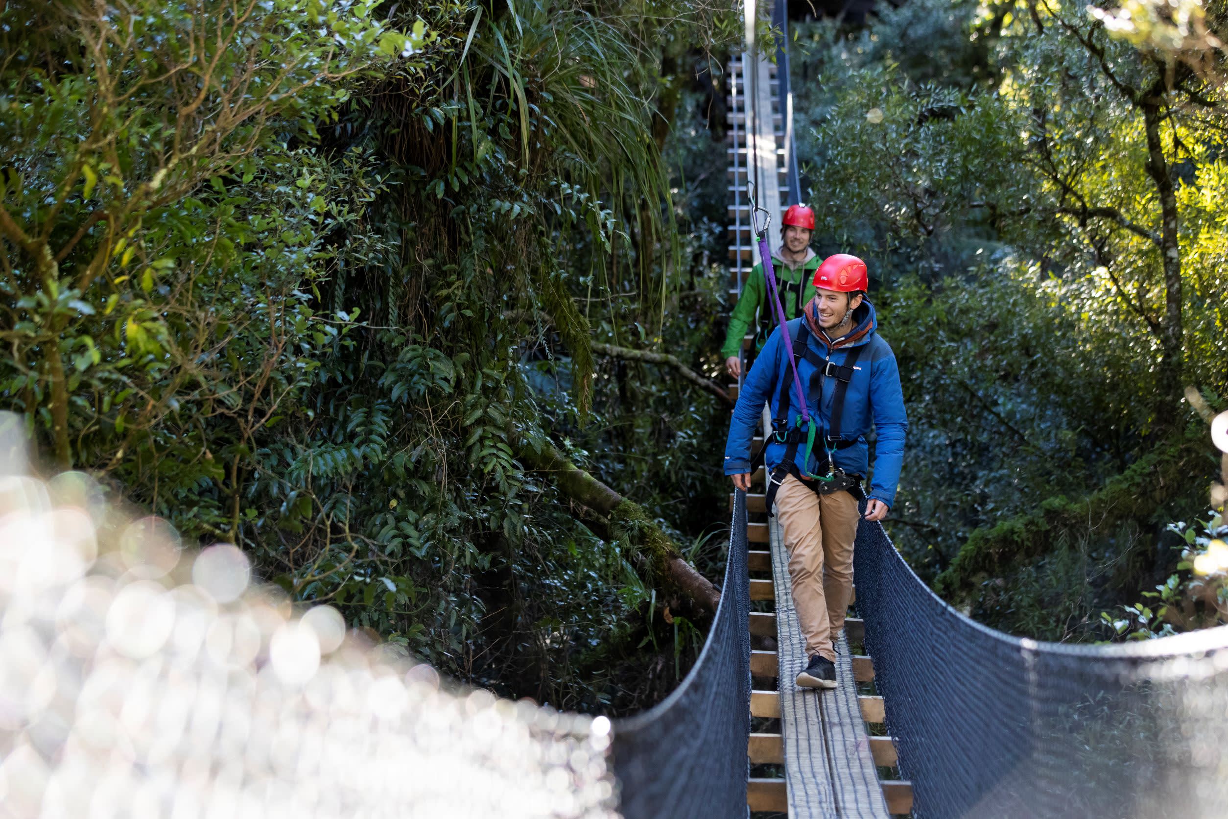 두 가지 어드벤처 중에서 선택하세요. • 오리지널 캐노피 투어 (2시간 30분, 만 6세 이상): 6개의 짚라인(최대 220m), 구름다리, 가까이에서 즐기는 자연과 새소리. • 얼티밋 캐노피 투어 (3시간, 만 10세 이상): 더 길고 가파른 라인, 400m 탠덤 레이스, 플로팅 계단, 뉴질랜드 유일의 화산 절벽 산책로.