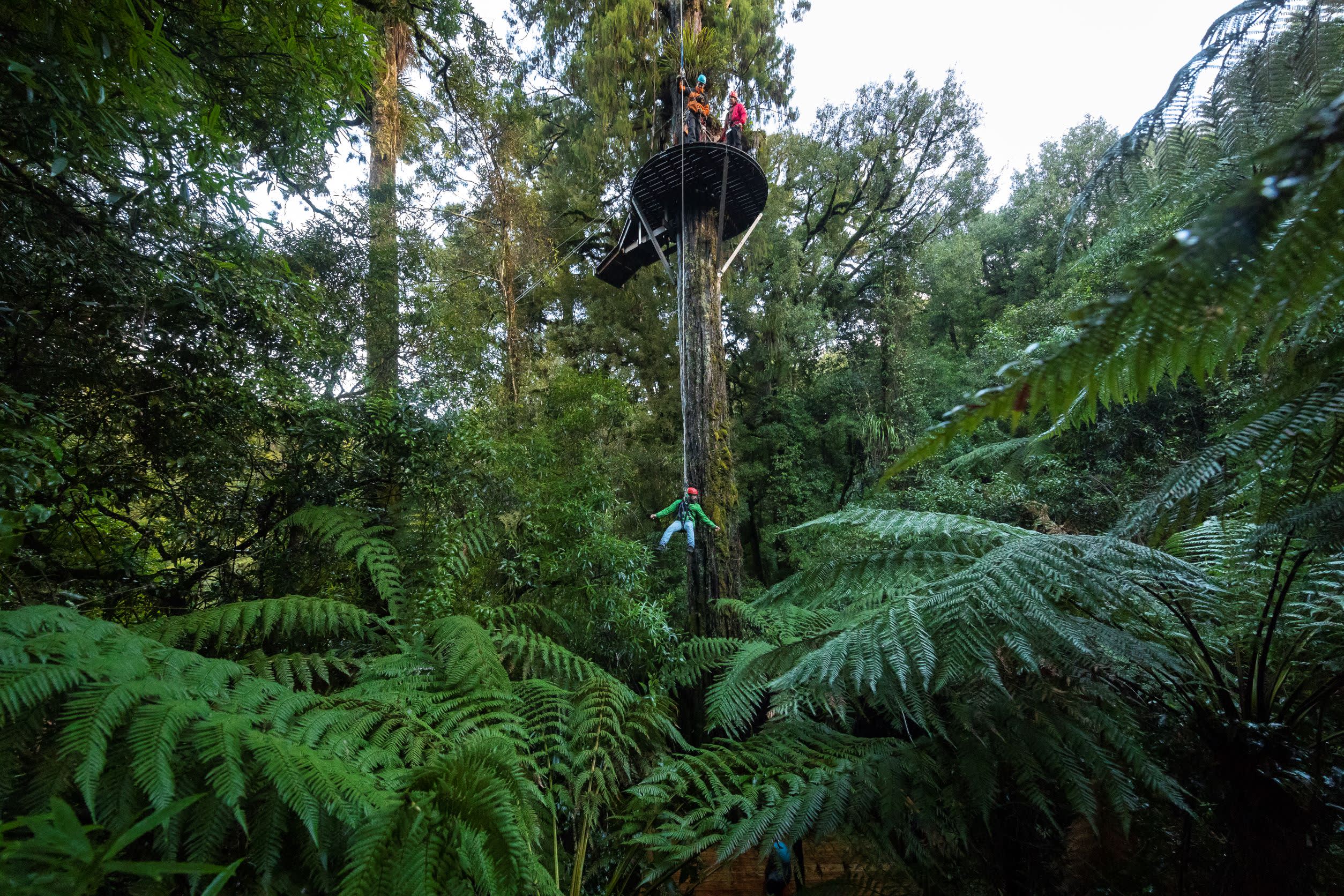 수령이 1,000년 된 거목들이 울창한 희귀 원시림, 오코헤리키(Ōkoheriki)에서 짜릿한 짚라인을 즐겨보세요.