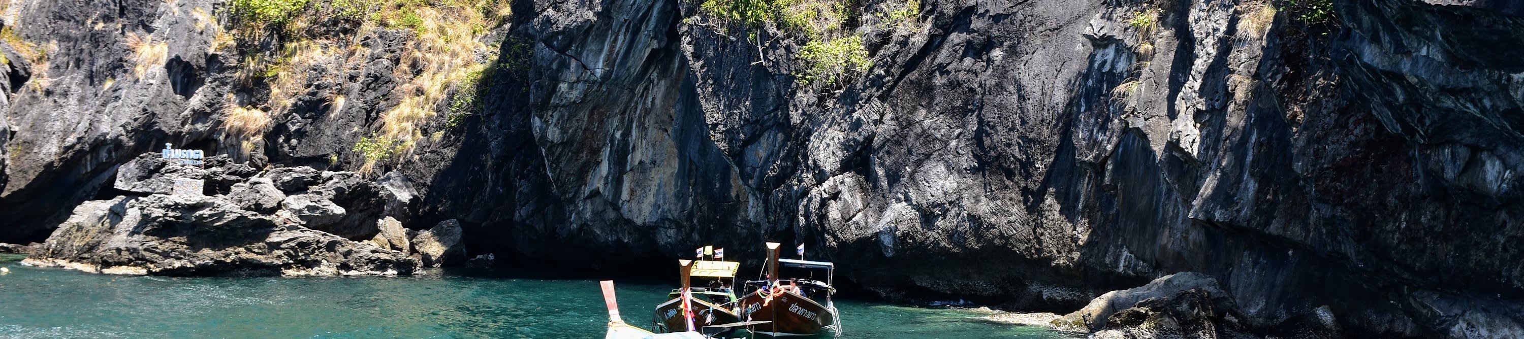 코란타에서 출발해 최고의 섬 여행을 떠나보세요. 호텔 픽업 서비스로 편안하게 시작하여 올드 타운 부두에서 클래식 롱테일 보트를 타고 청록색 안다만 해를 건너세요. 첫 번째 목적지는 다채로운 산호와 열대어가 가득한 스노클링 명소인 코 추악입니다. 다음으로 어두운 터널을 헤엄쳐 숨겨진 햇빛이 비치는 석호를 발견하는 코 묵의 유명한 에메랄드 동굴을 경험해보세요. 투어의 하이라이트는 세계에서 가장 아름다운 해변 중 하나가 있는 코 끄라단에 새로 추가된 정차지입니다. 스노클링을 하거나 휴식을 취하기 전에 하얀 모래사장에서 맛있는 태국식 뷔페 점심을 즐겨보세요. 마지막 목적지는 평온한 코 응아이입니다. 이곳에서 마지막 수영을 즐기거나 아름다운 경치를 감상하며 돌아가기 전에 휴식을 취할 수 있습니다. 잊지 못할 추억을 가득 안고 호텔로 돌아가실 수 있습니다.