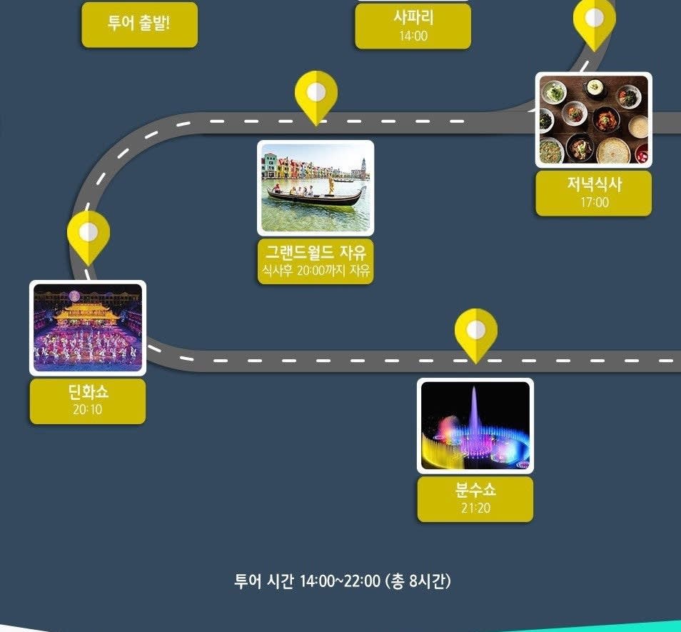 ▶일일 투어 - 이용요건 * 신장 99cm 이하 아동은 무료입니다. - 추가정보 - 차량 & 수하물 정보 * 수하물 수용: 표준 크기 수하물 1개