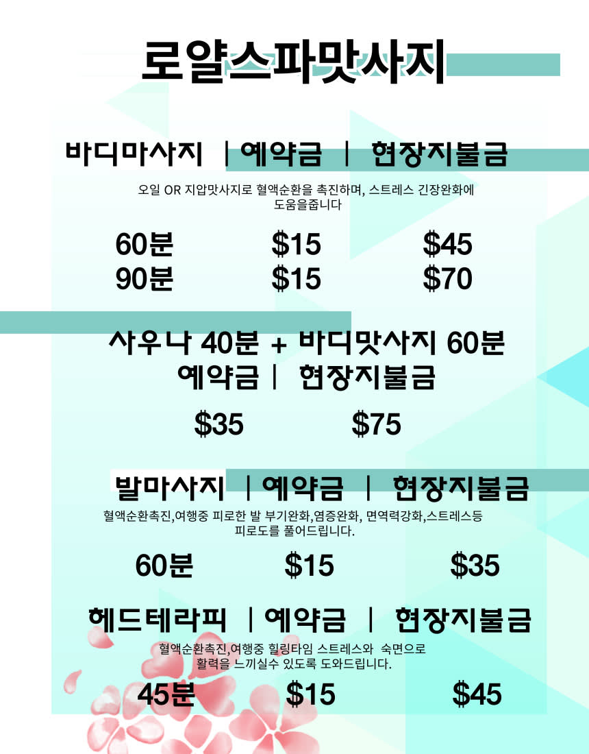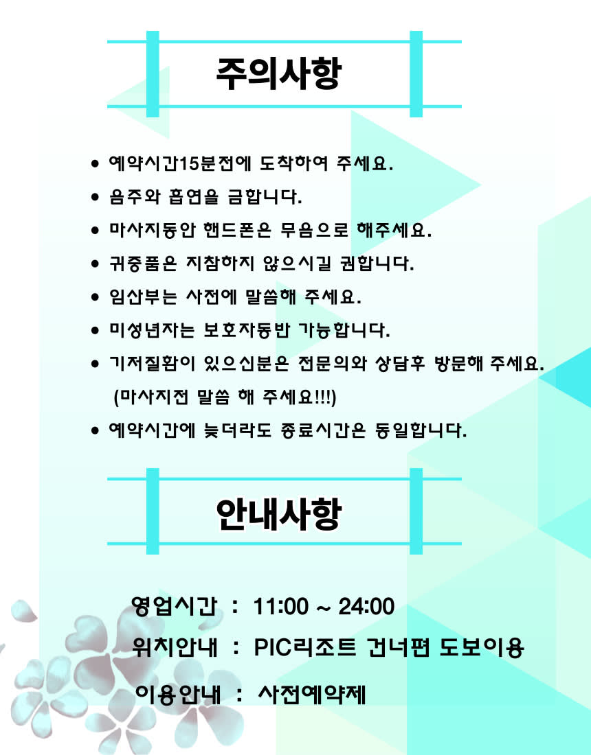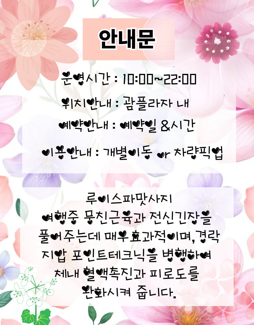 개인의 컨디션에 따라 관리하며 여행시 피로회복& 뭉친근육 긴장완화신체 에너지 밸런스와 힐링시간사전예약필수,특별픽업가능,개별이동 가능am 10:00~pm22:00