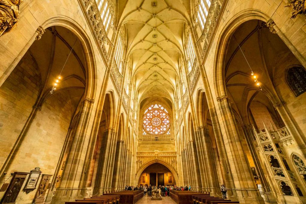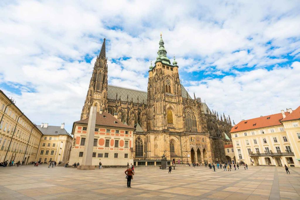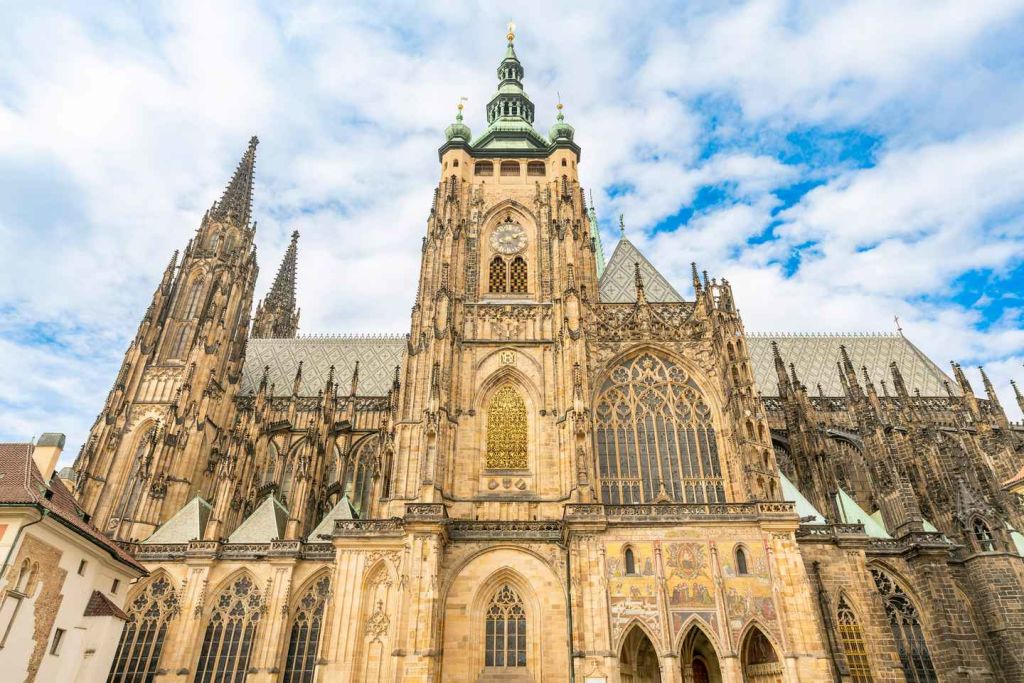성 비투스 성의 고딕 양식 건축물에 감탄하세요. 성당 외관을 장식하고 있는 가고일 석상을 발견하세요. 체코의 예술가 알폰스 무하가 만든 아르누보 스테인드글라스 창을 눈부시게 감상하세요. 14세기에 만들어진 최후의 심판 모자이크를 감상해 보세요.