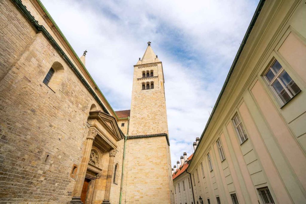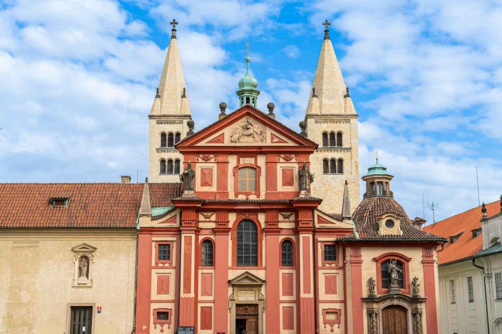 성 조지 대성당을 방문하세요. 성당의 돌담과 디자인은 성의 웅장함과 대조를 이룹니다. 12세기 프레스코화 조각을 감상한 후 성 루드밀라의 유해가 있는 이중 계단을 올라가 보세요.