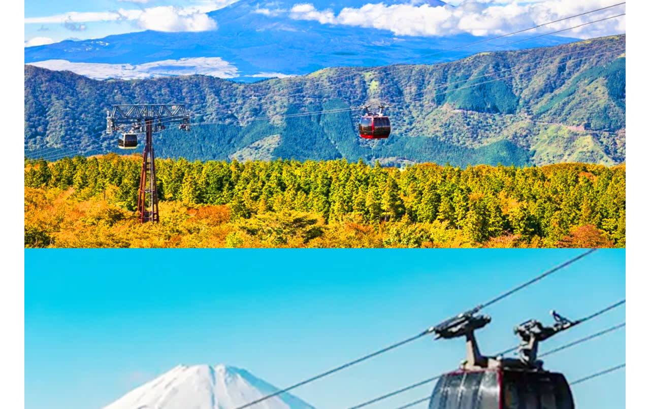 * 하코네 로프웨이를 타고 후지산과 아시노호의 탁 트인 전망을 감상하세요.