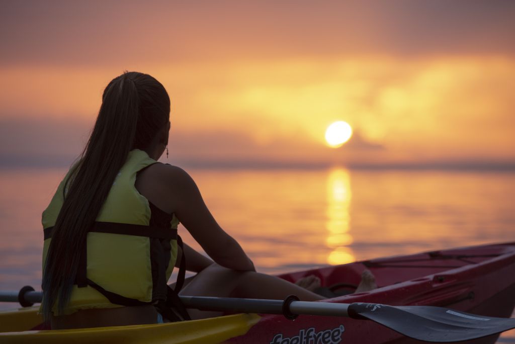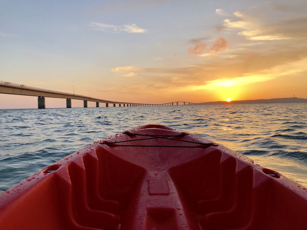 투리바 지역에서 이라부대교 근처까지 이동해 바다 위에서 선셋을 감상하는 카약투어를 소개합니다.