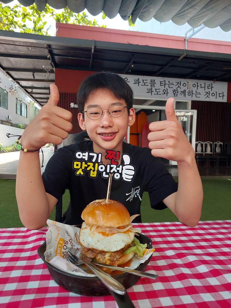 강습 후 서프로샵에서 즐길 수 있는 맛있는 수제버거도 즐겨보세요. (서핑 강습 예약시 수제버거 50% 할인)