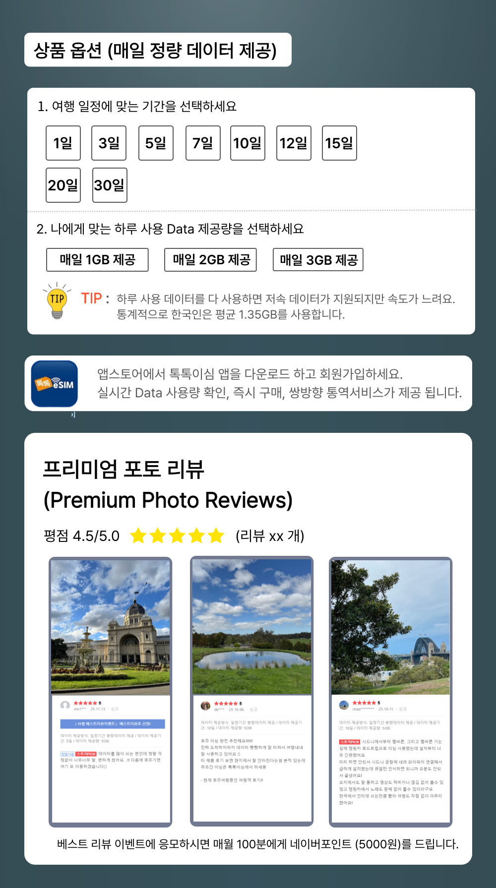 [톡톡이심] 호주 이심 매일 데이터 제공, 오페라 하우스, 하버 브리지, 그레이트 오션 로드 eSIM