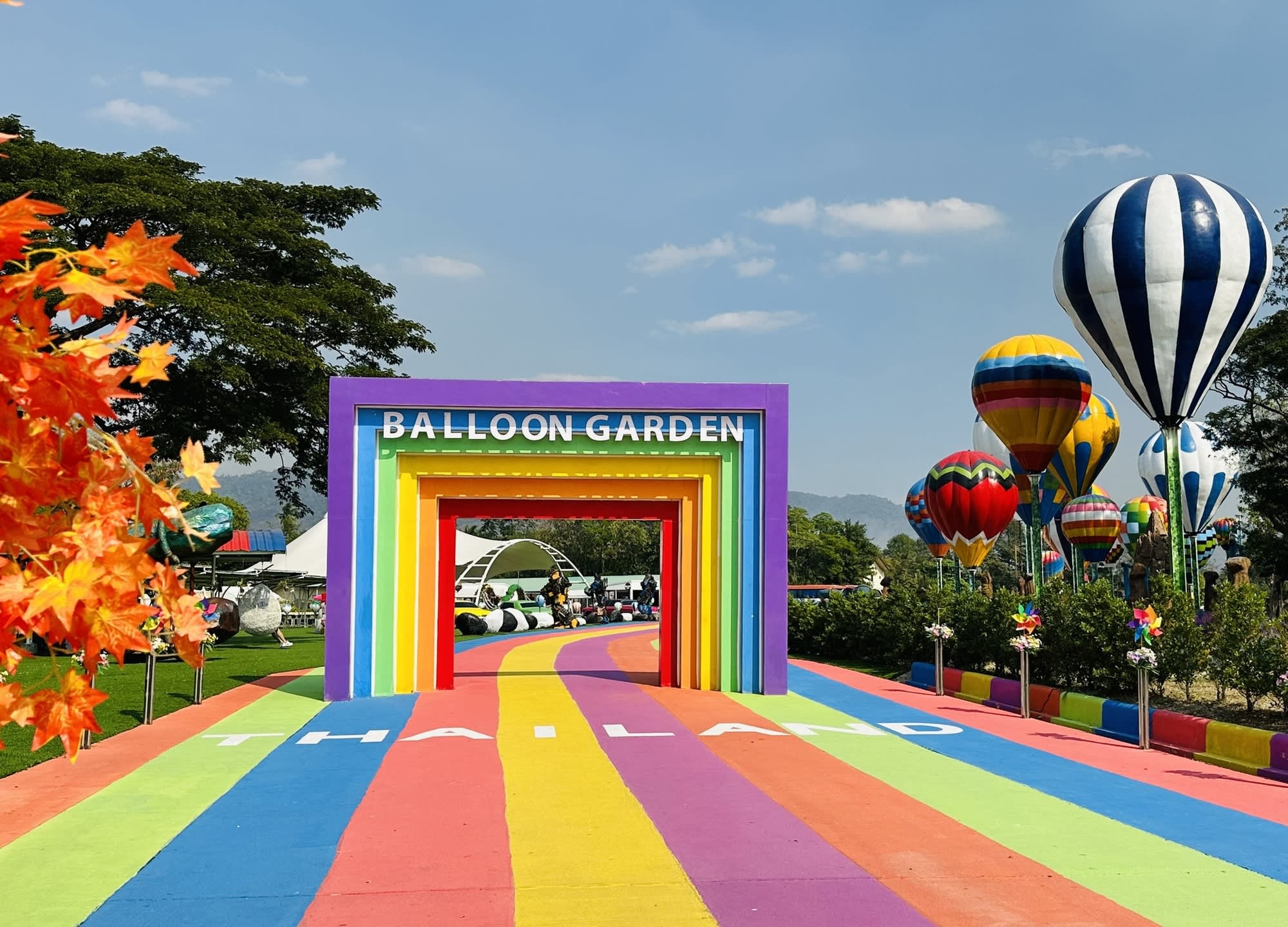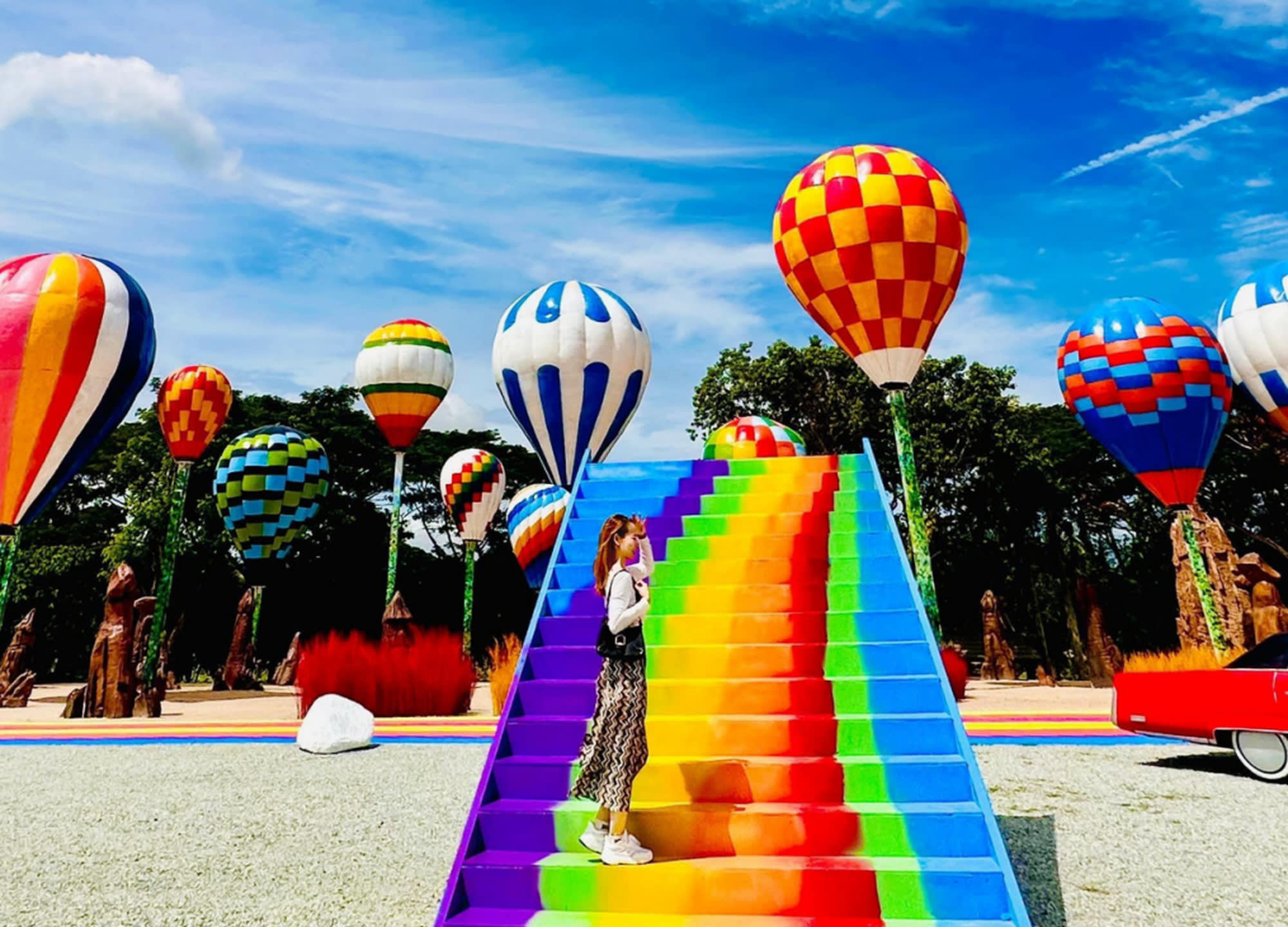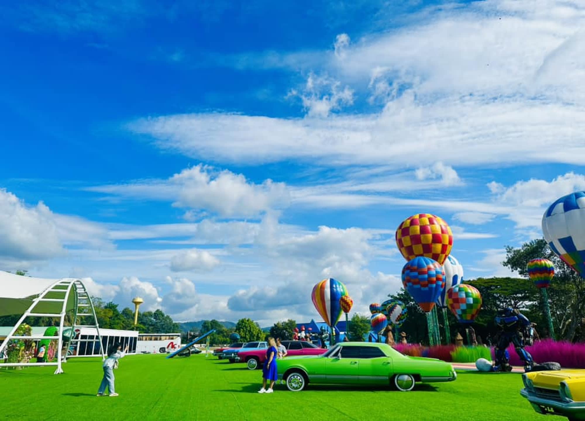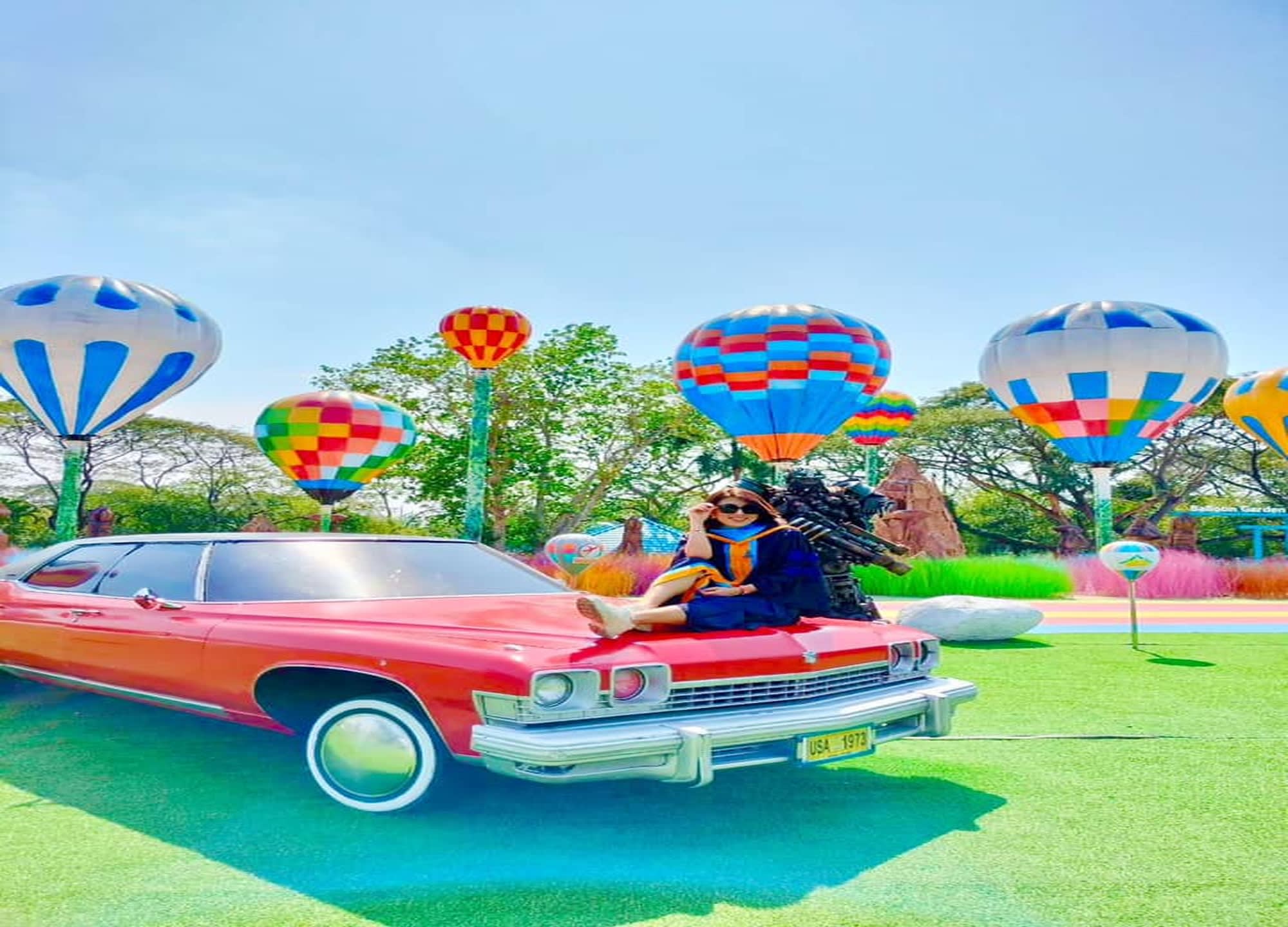 야외 공간은 벌룬 가든으로 꾸며져 열기구, 컬러풀한 인공 잔디 정원, 가을 색조의 나무, 트랜스포머 피규어와 클래식카 등 다채로운 소품이 어우러진 포토존이 펼쳐집니다.