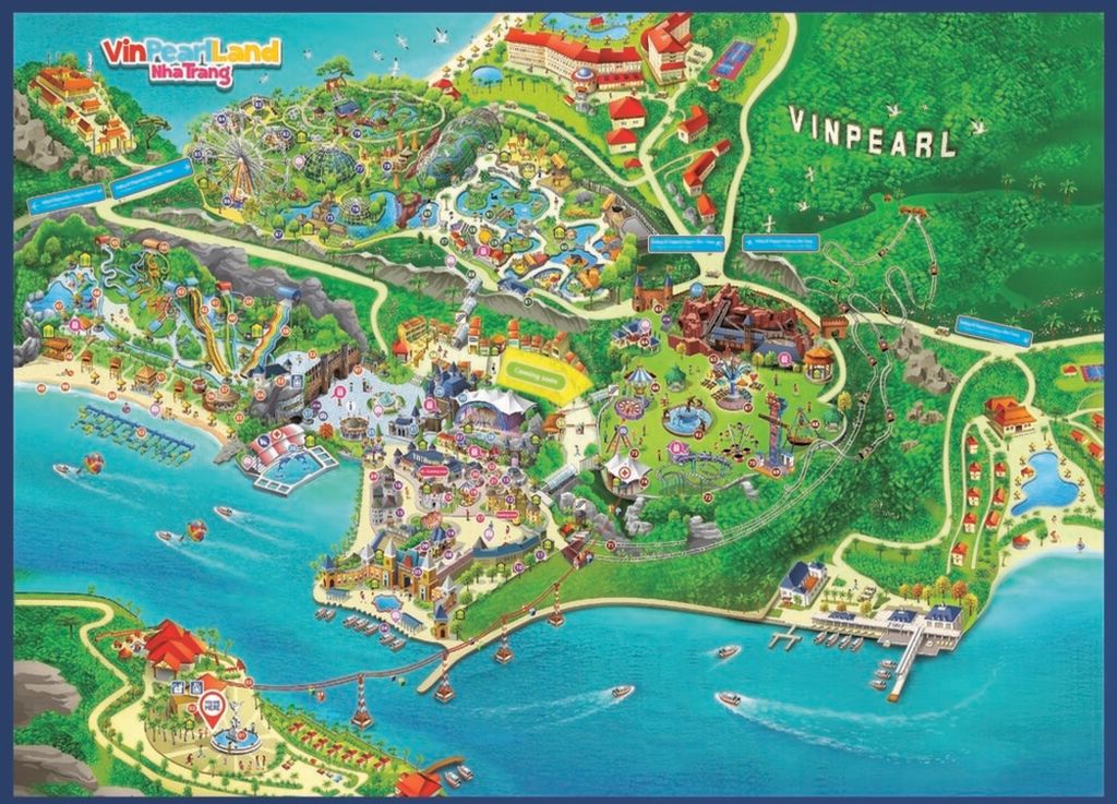 나트랑 해변 남쪽 빈펄 선착장에서 케이블카나 페리를 타고 입장할 수 있습니다.