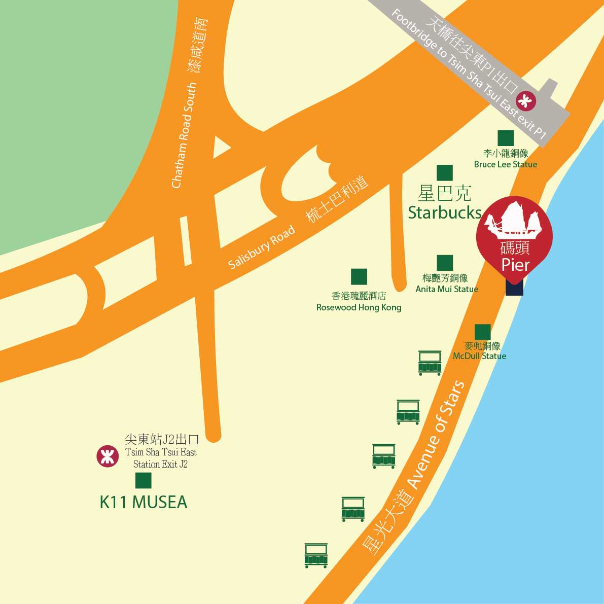 * 탑승 및 드롭 장소: 침사추이 이스트 공공 부두, 스타의 거리(스타벅스/와일드파이어 피자바 외부), 침사추이 이스트 워터프런트