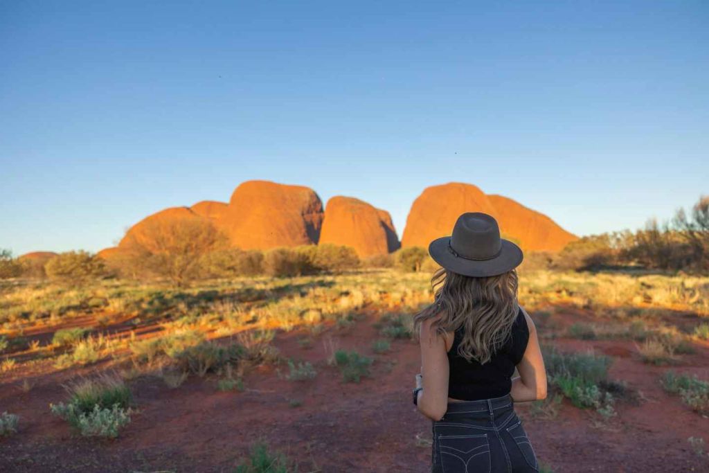 앨리스 스프링스에서 출발하는 승객은 오전 6시에 픽업되어 4.5시간 동안 율라라로 이동한 후 이른 점심을 즐깁니다. 윌라라 또는 울루루 공항에서 출발하는 승객은 오후 1시 40분~2시 사이에 픽업됩니다. 짧은 이동 후, 카타추타(올가스)에 도착합니다. 36개의 돔은 크기가 다양하며 울루루와는 상당히 대조적입니다. 오후에 돔 사이를 하이크하며 풍경을 꽤 잘 파악할 수 있습니다. 저녁이 되면 태양이 천천히 지며 울루루 전역에 다양한 흙빛을 드리우니 가벼운 간식을 즐겨보세요. 캠프로 돌아와 일행과 함께 맛있는 음식을 즐기며 멋진 하루를 완벽하게 마무리하세요. 날씨가 허락한다면, 별빛 아래 야외에서 시간을 보내세요.