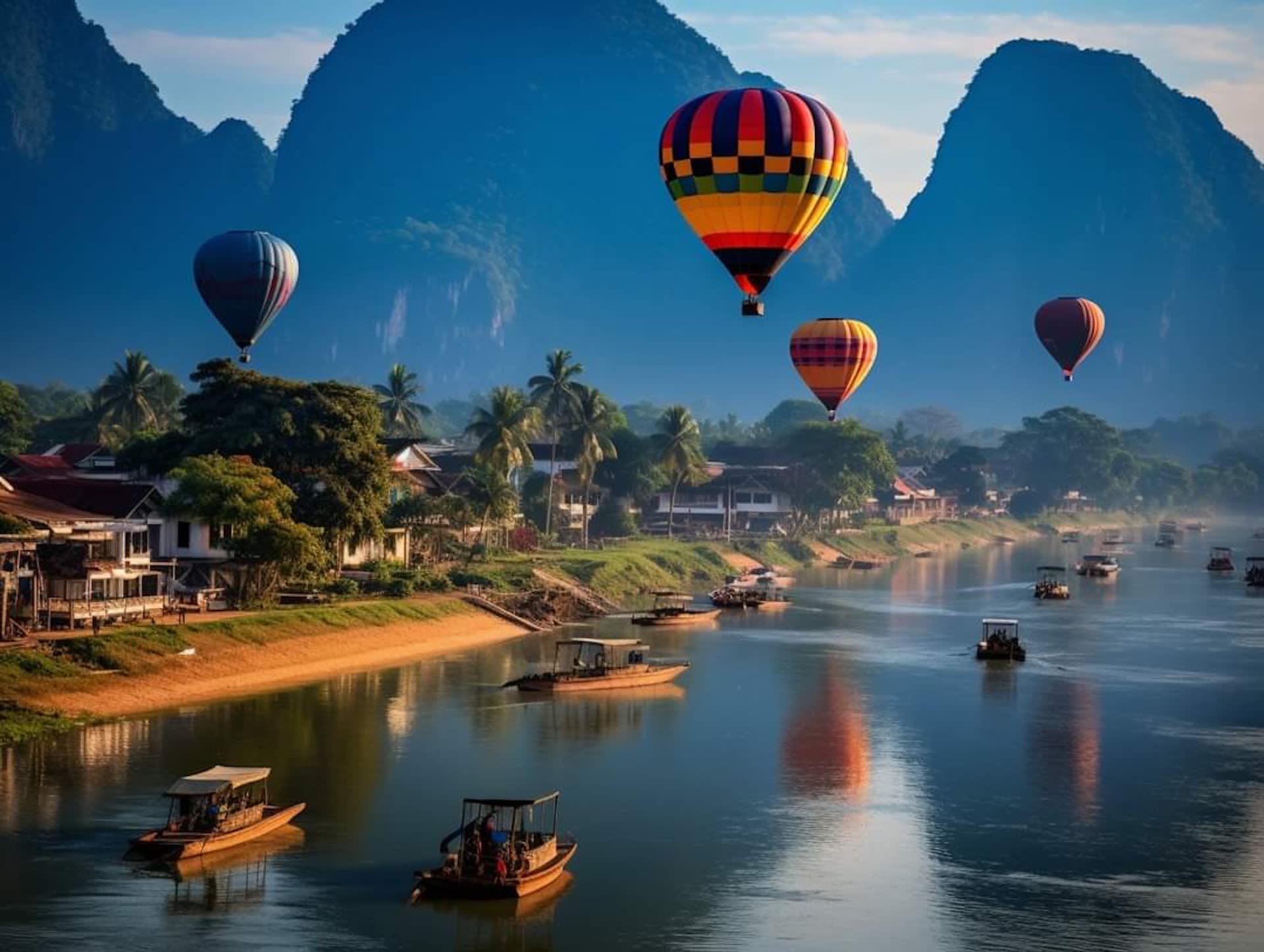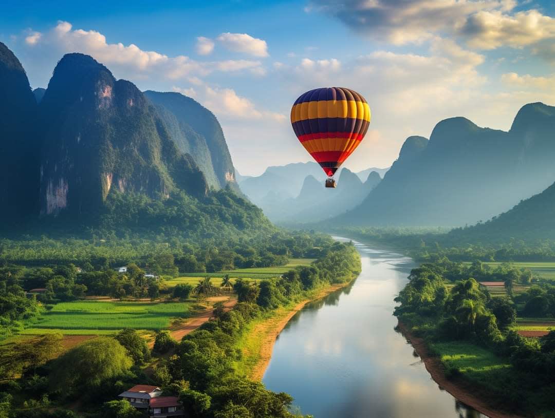 * 하늘을 가르며 평화로운 30분 동안 열기구를 타고 아름다운 방비엥의 풍경 위를 날아보세요.
